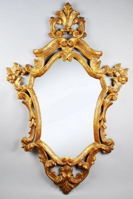 Italiensk forgyldt rococo spejl, 19. årh. H. 99 cm. B: 64 cm. Proveniens: Kunstnerparret Bertha Wegmann og N. V. Dorph.