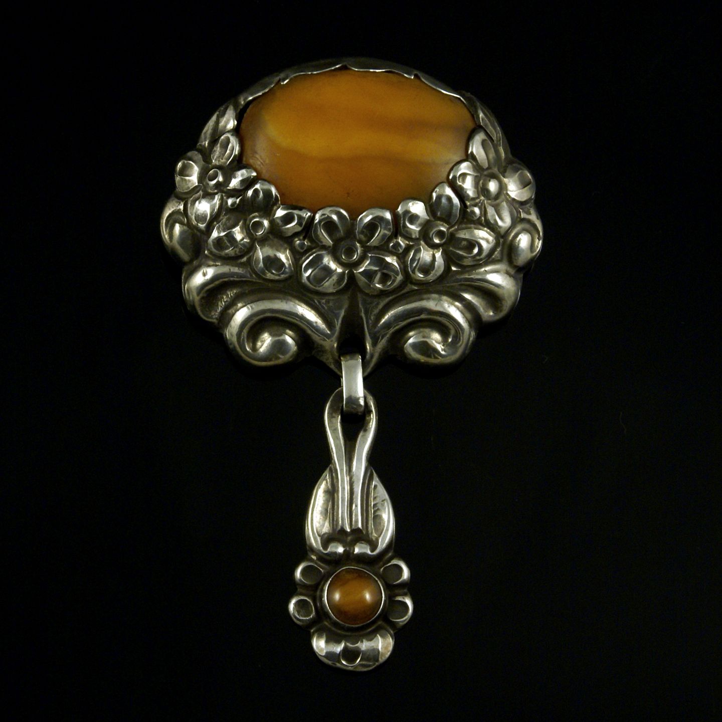 Danish Art Nouveau Silver Brooch with Amber - Knud Georg Jensen.
