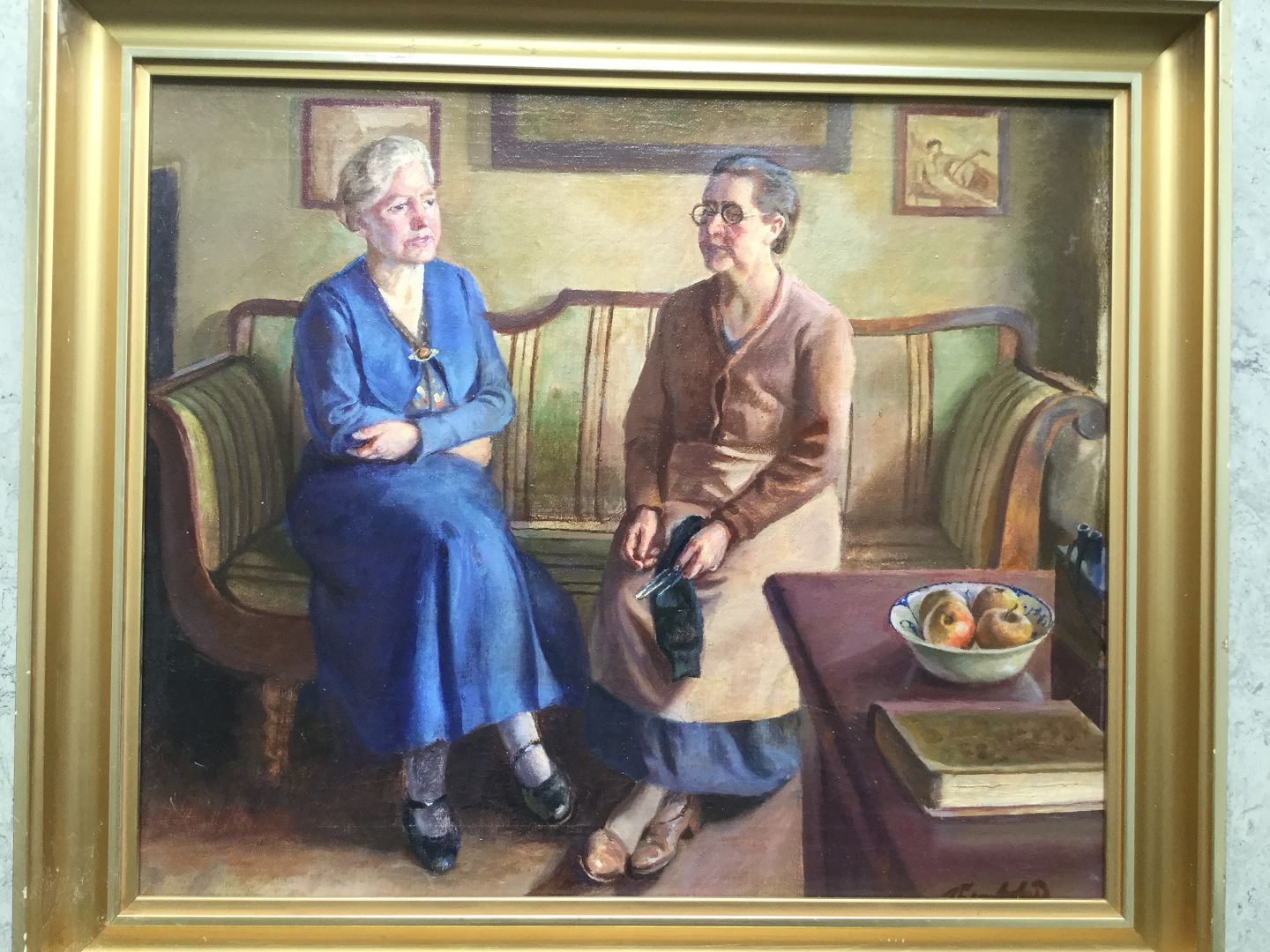 Maleri af Johannes Lembcke Jensen - 2 kvinder i sofa.