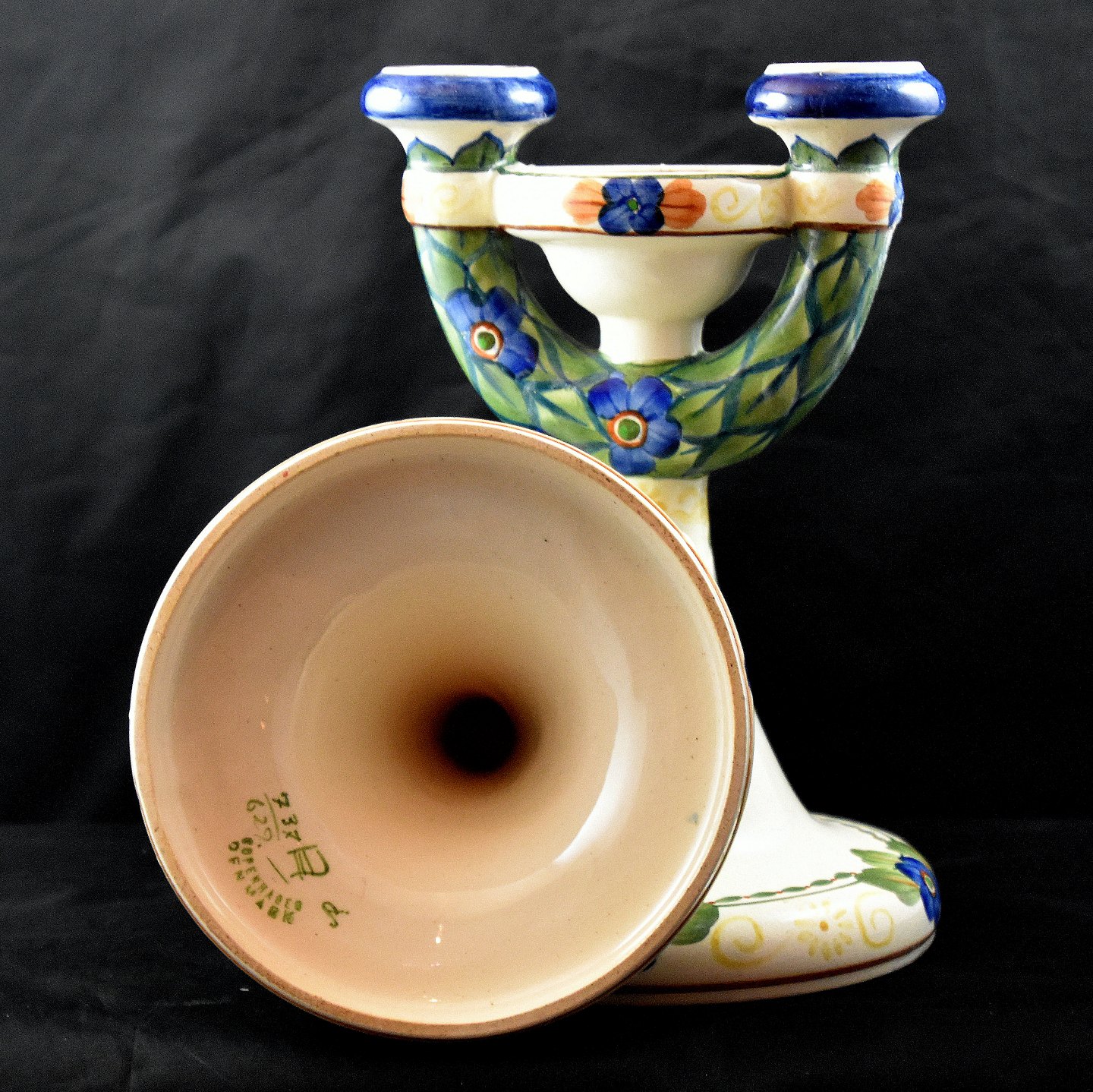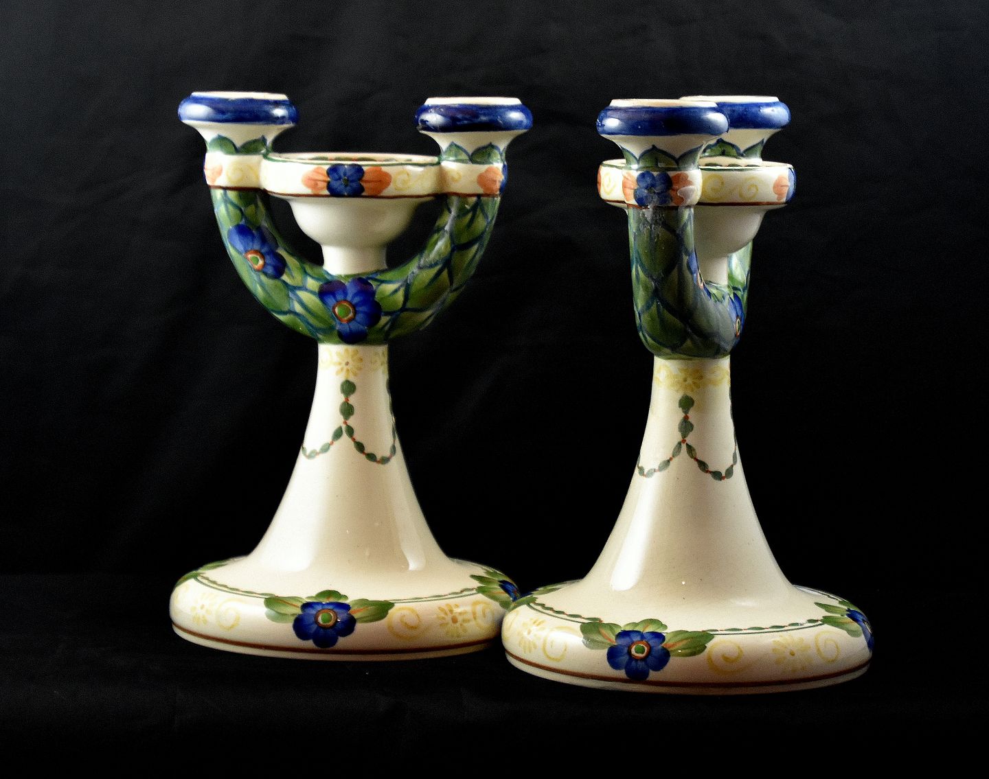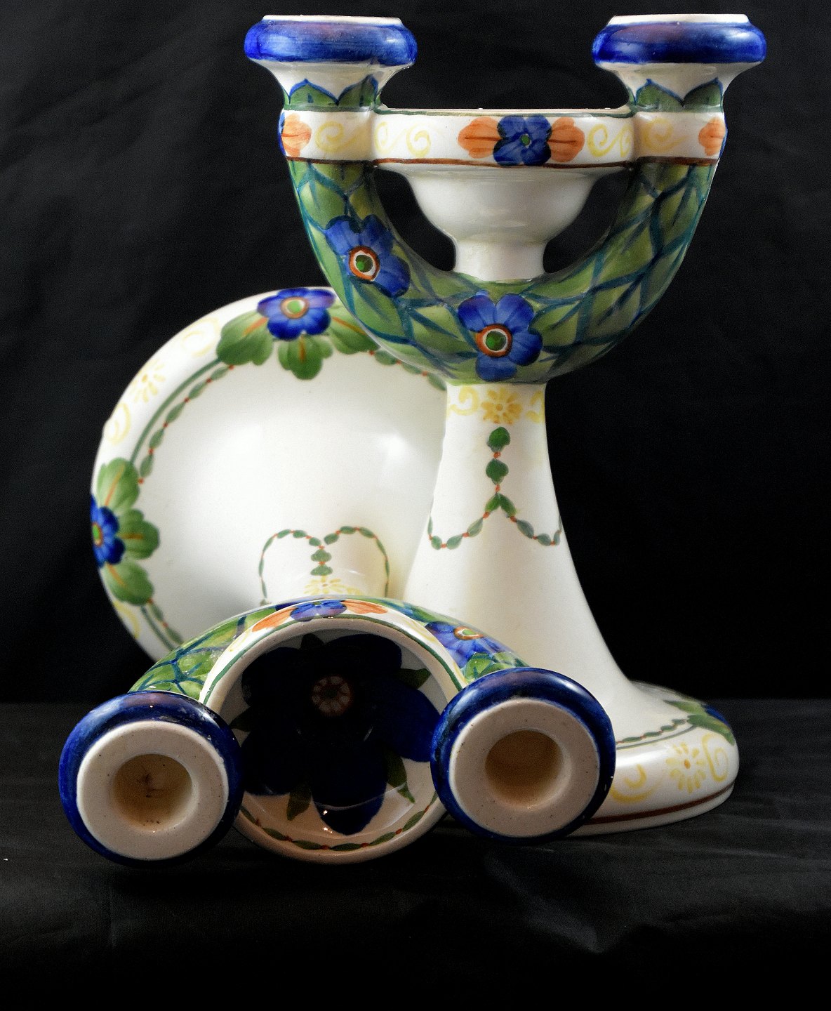 2 armet lysestager i kunstfajance fra Aluminia nr. 737/680.