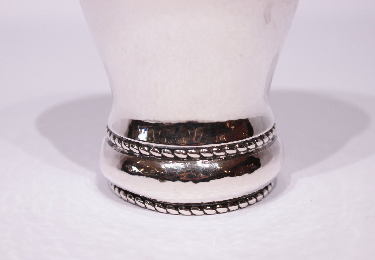 Flot hammerslået vase dekoreret med fin perlekant nederst, tretårnet sølv.