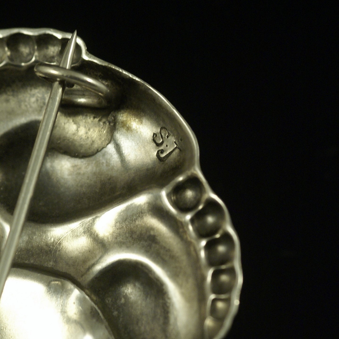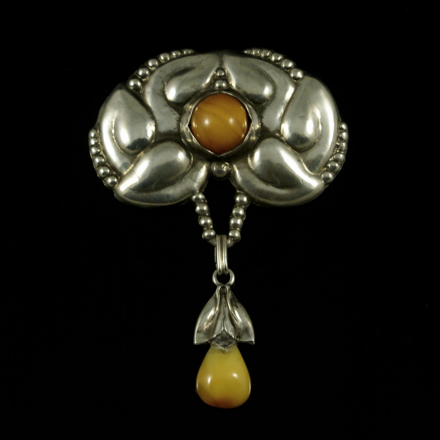 V. Lauritzen. Skønvirke Broche i Sølv med rav.