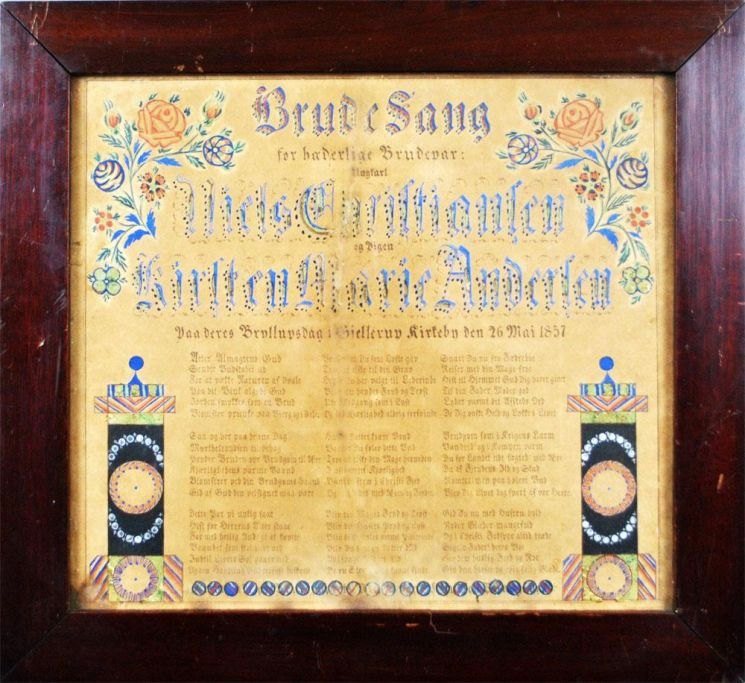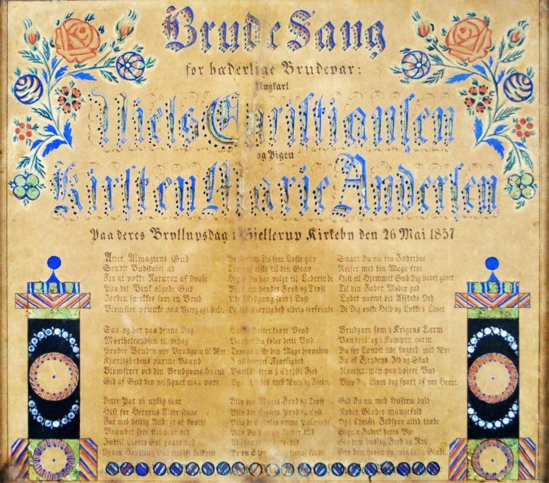 Wedding song for Bridal Couple, Niels Christiansen and girl Kirsten Marie Andersen, 26 May 1857.