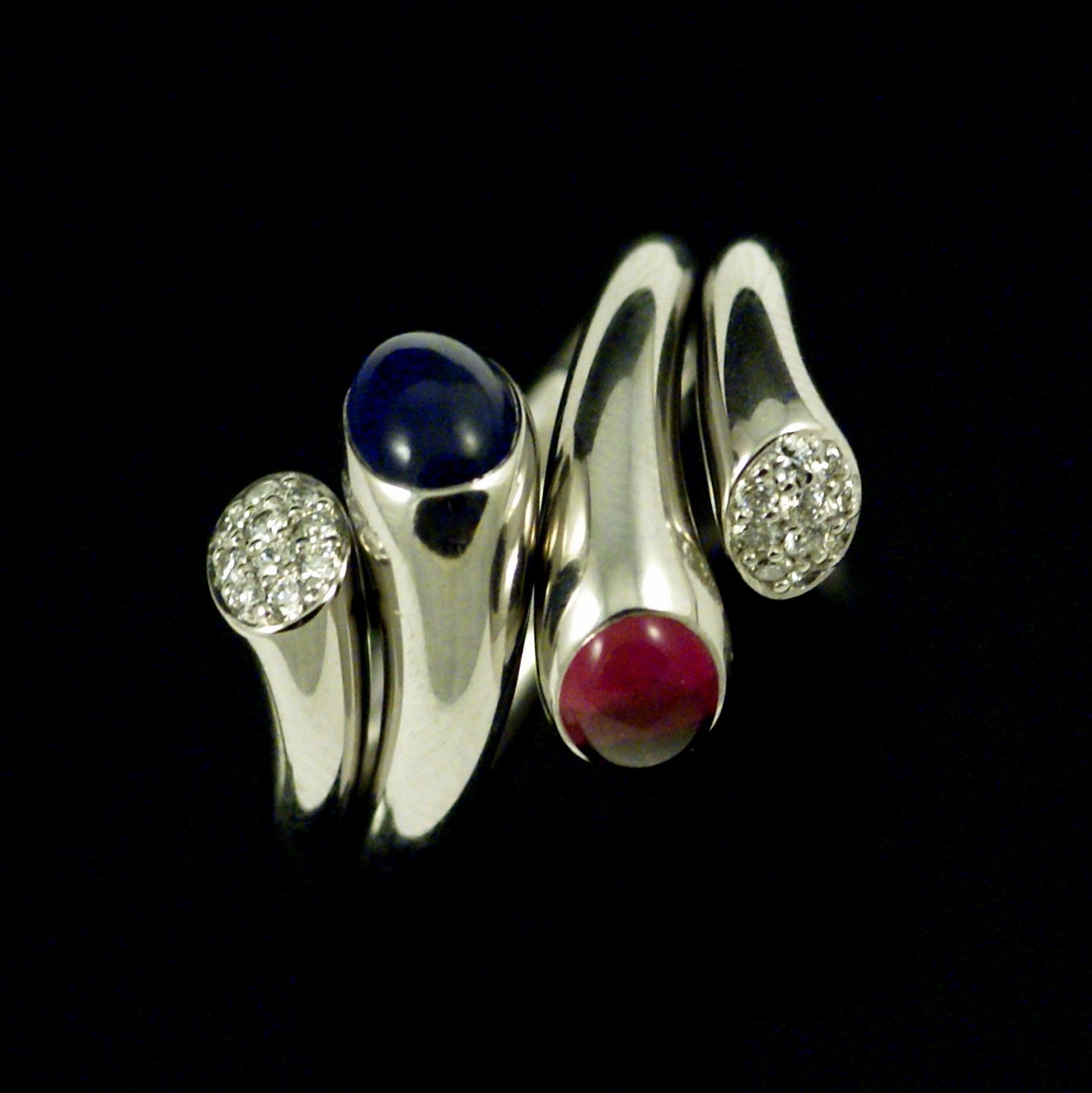 Georg Jensen. A pair of 18k White Gold Rings with diamonds 0.20ct, Sapphire and Rubelit Tourmalin #1263 - CARNIVAL