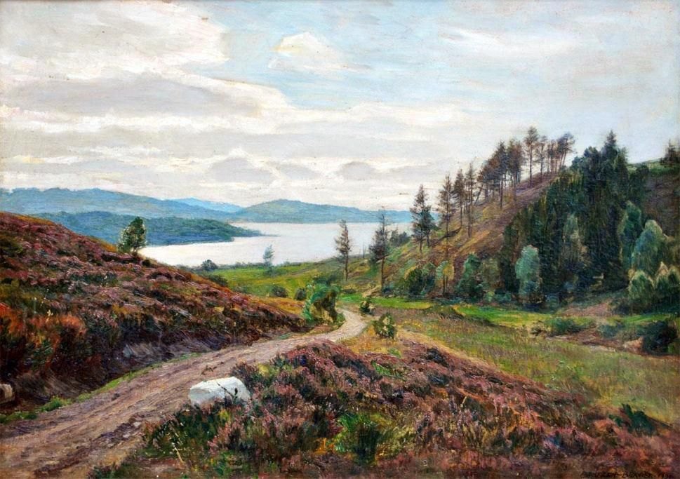 Bentzen-Bilkvist, Fritz (1865 - 1934) Danmark. Parti fra Juelsø. Signeret.: Bentzen-Bilkvist. 1920.. 52 x 73 cm.