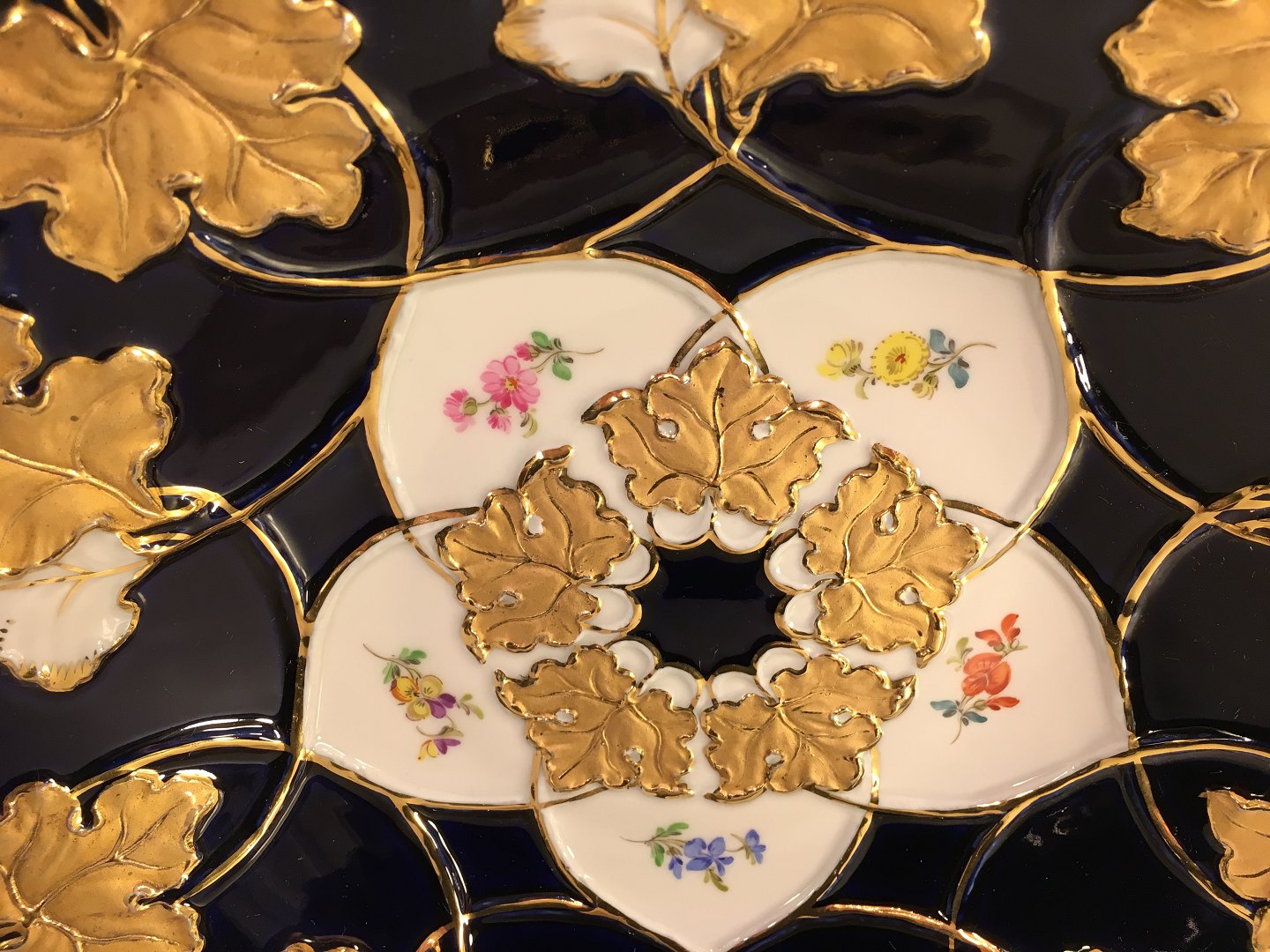 med Forgyldt dekoration i form af Blade og bemalet blomster i faddet.midte.