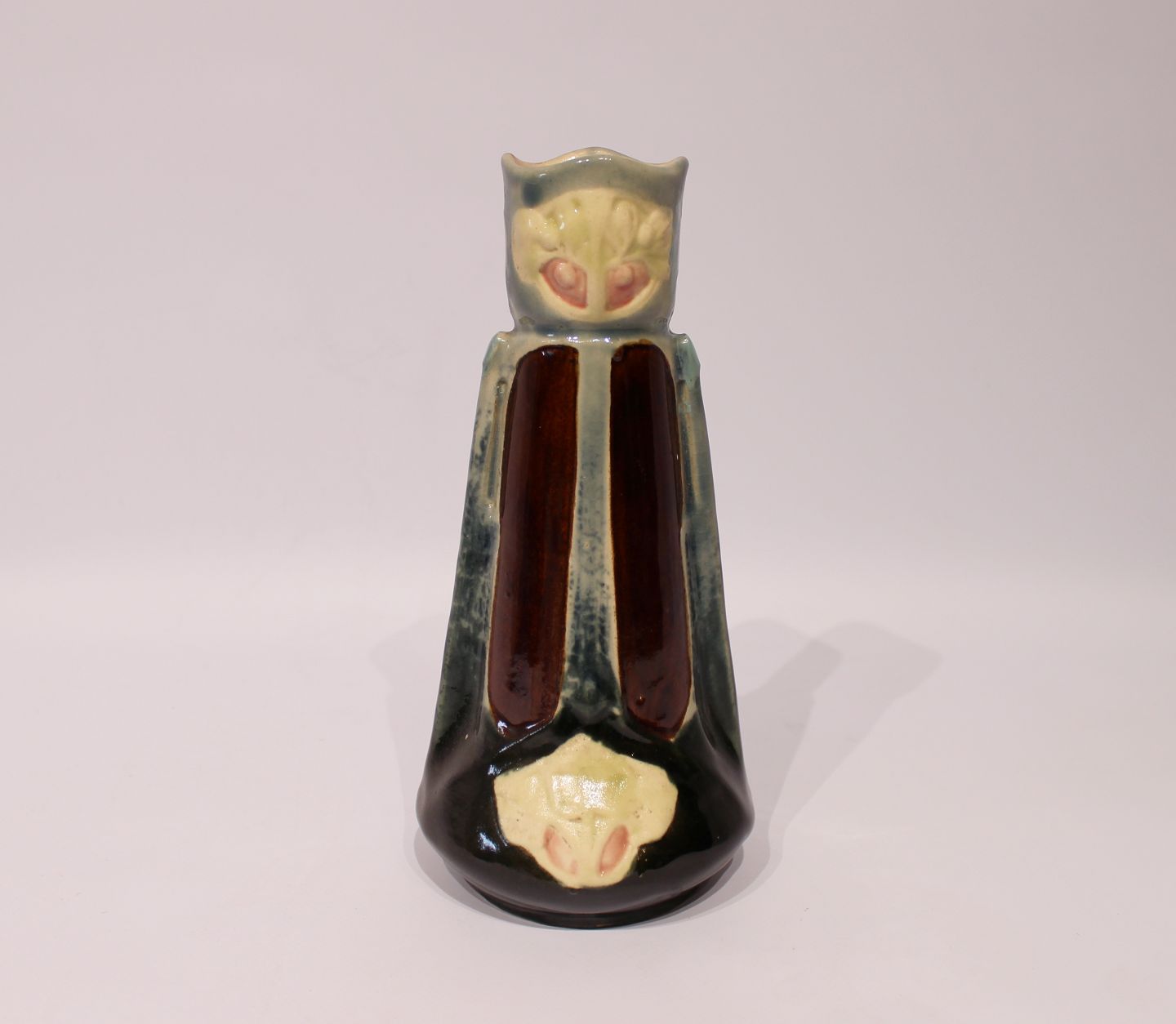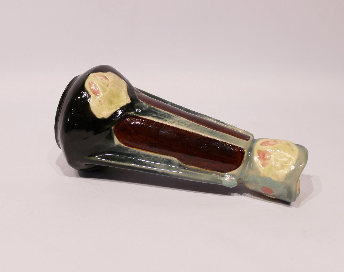 Flot keramik vase i forskellige mørke farver. Vasen er i flot brugt stand.