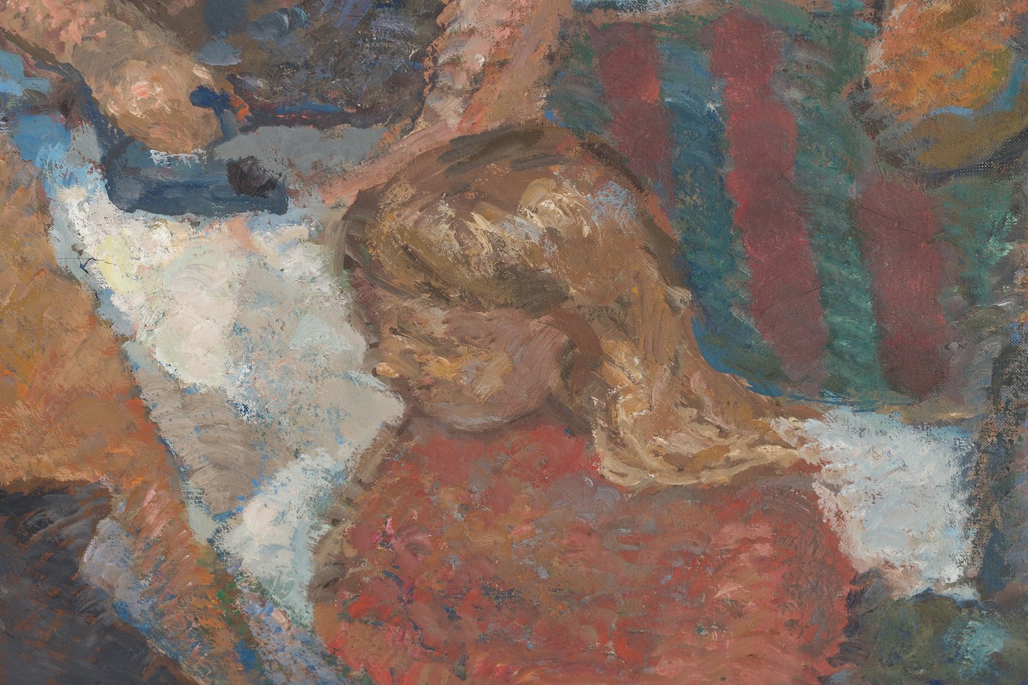 Signeret maleri af figurgruppe fra 1968 uden ramme