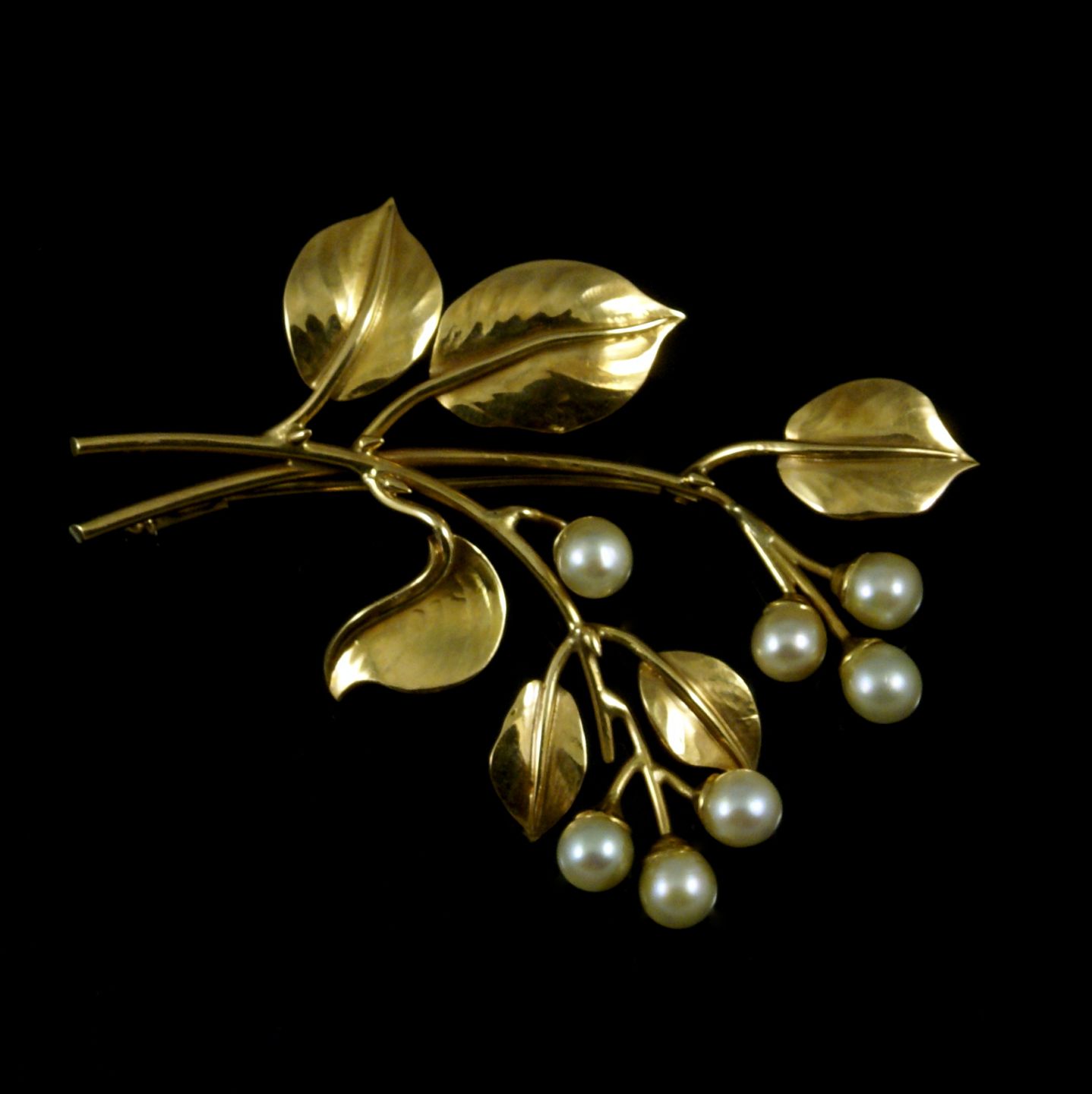 Chr. Rasmussen. Broche i 14k Guld med kulturperler.