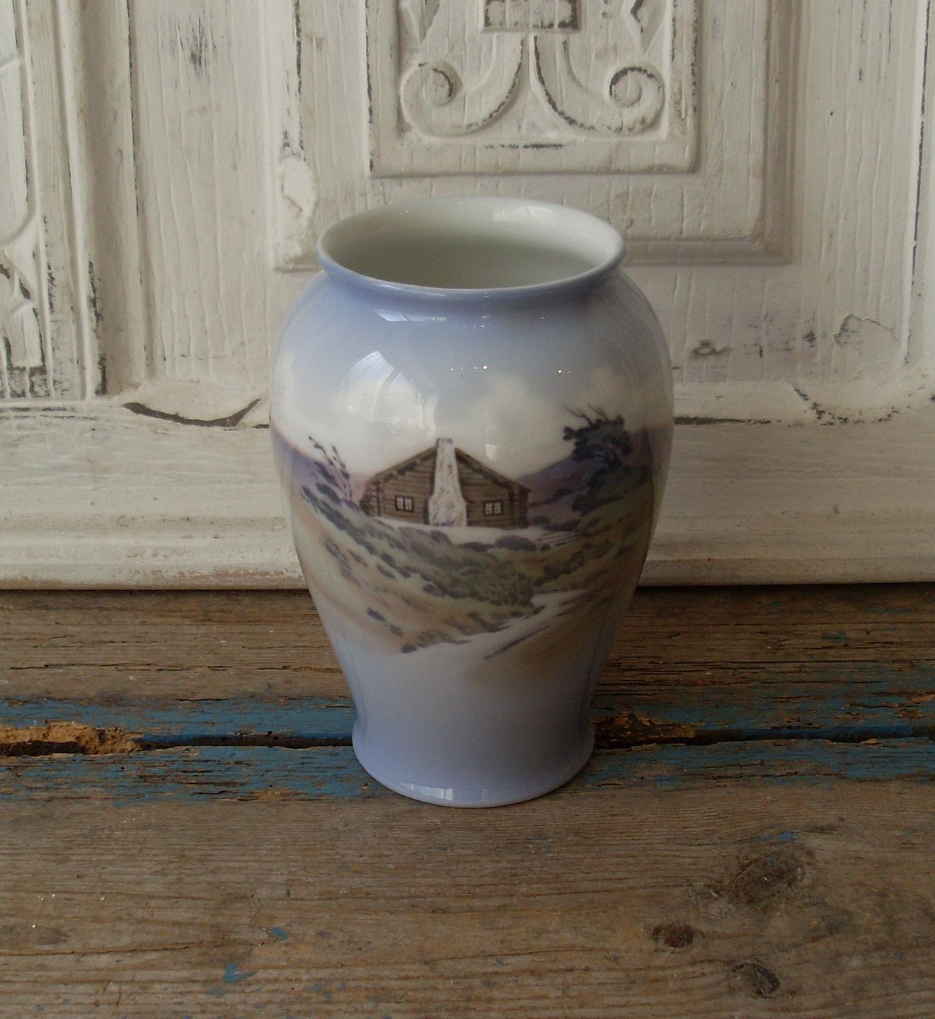 Royal Copenhagen vase dekoreret med landsakbs motiv.