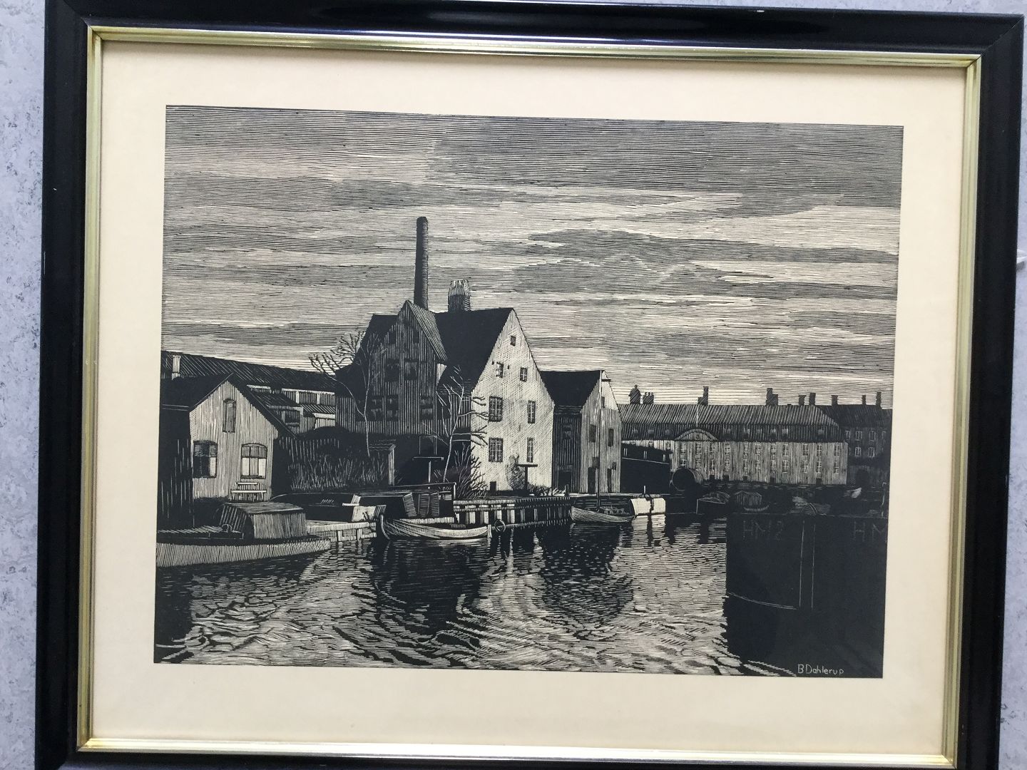 Indrammet i smuk sort lak ramme med sølvkant.
