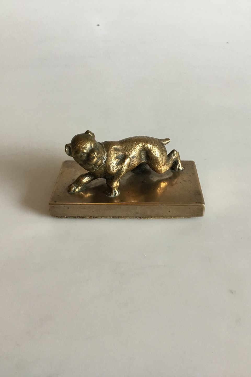 Brevpresser af Bronze med hund. Måler 10,5 cm x 5,5 cm