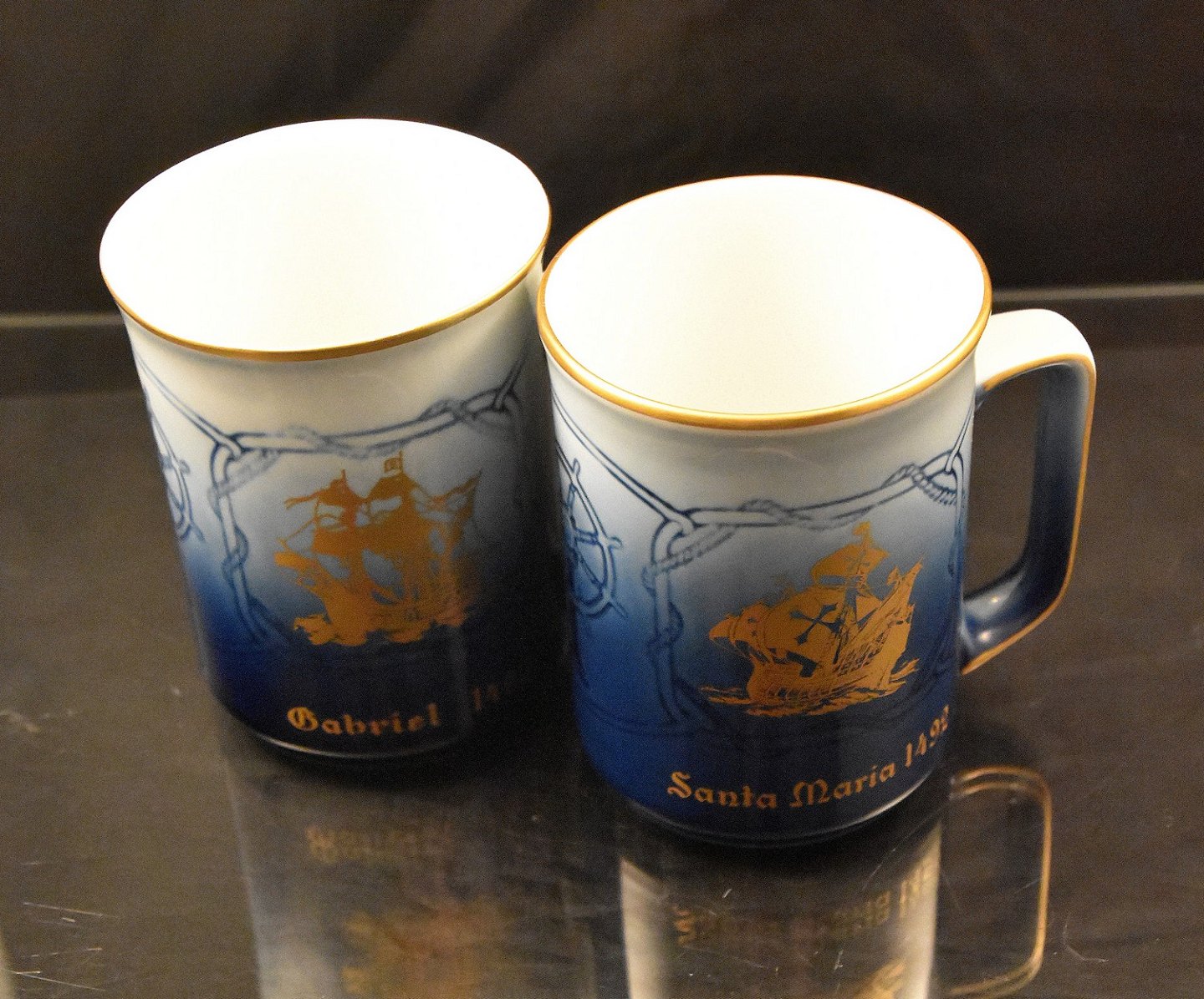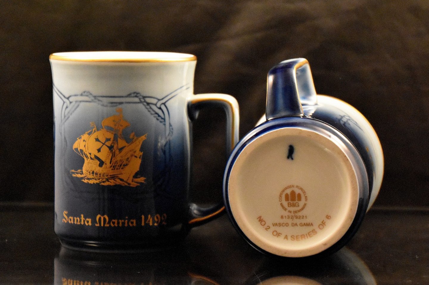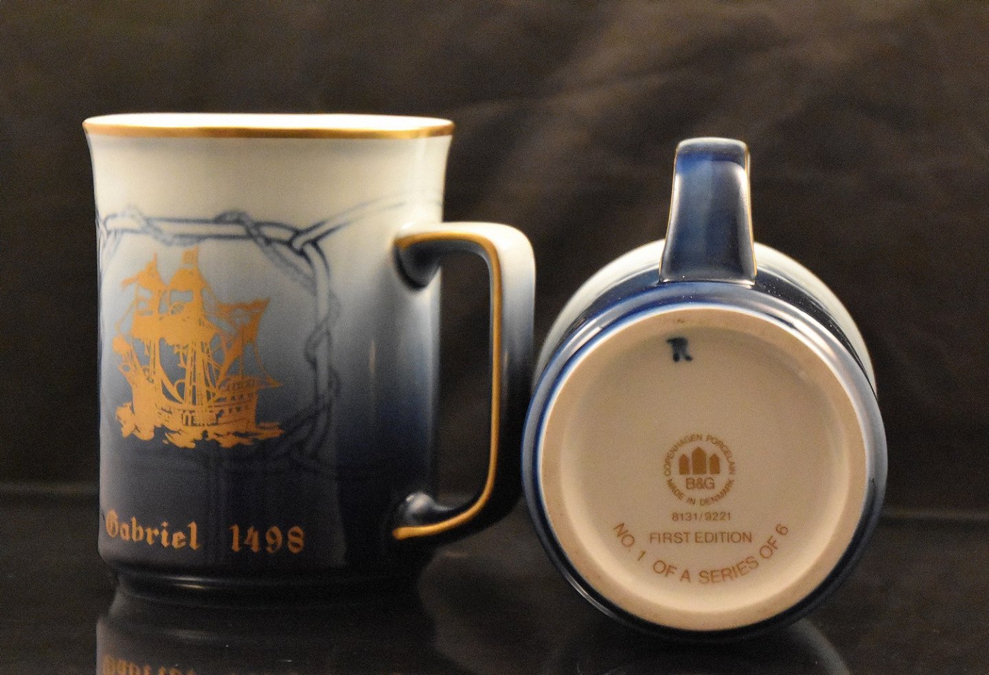 Bing & Grøndahl Krus er blå med maritime mønstre i guldtryk (8132/9221)