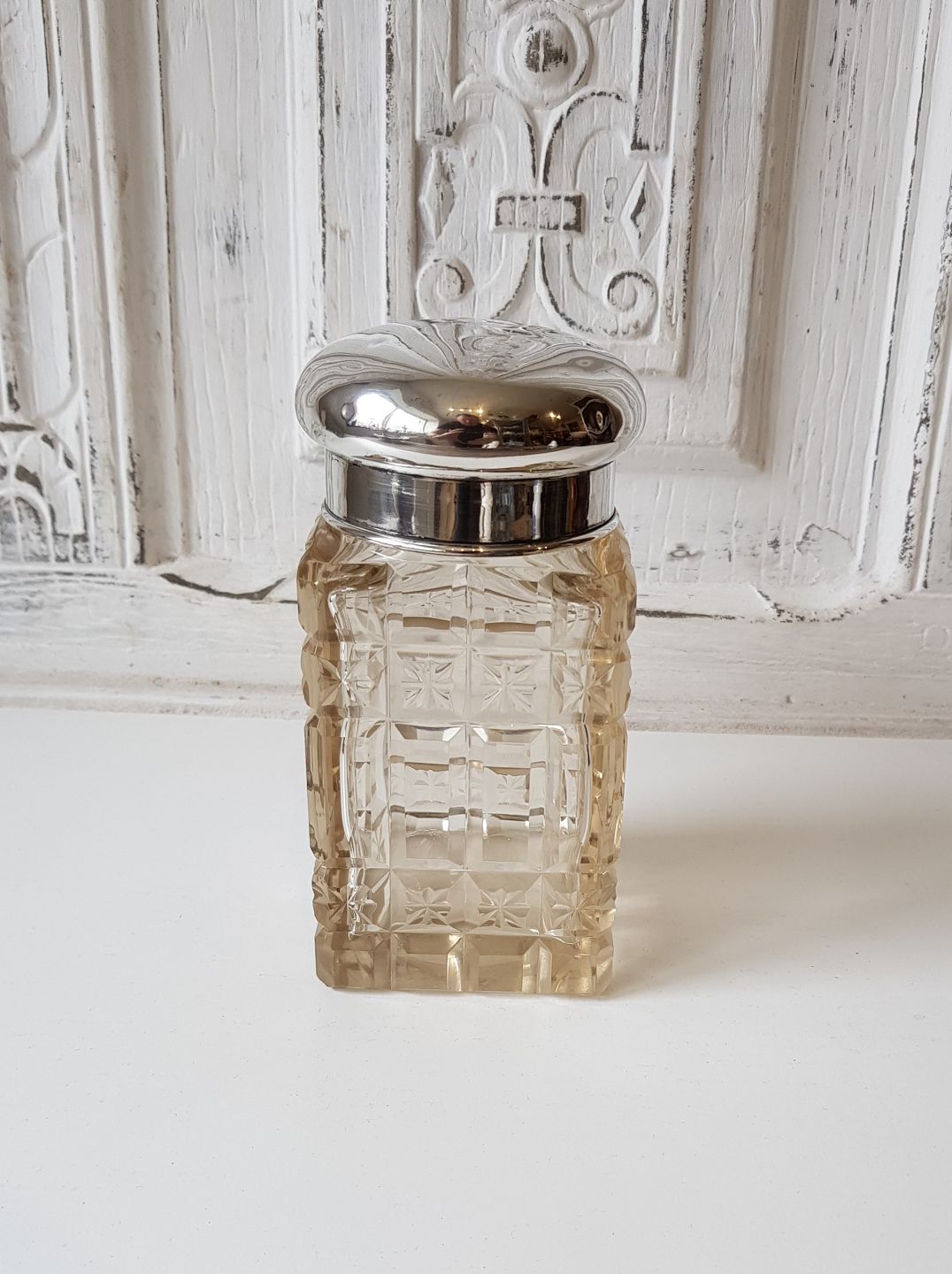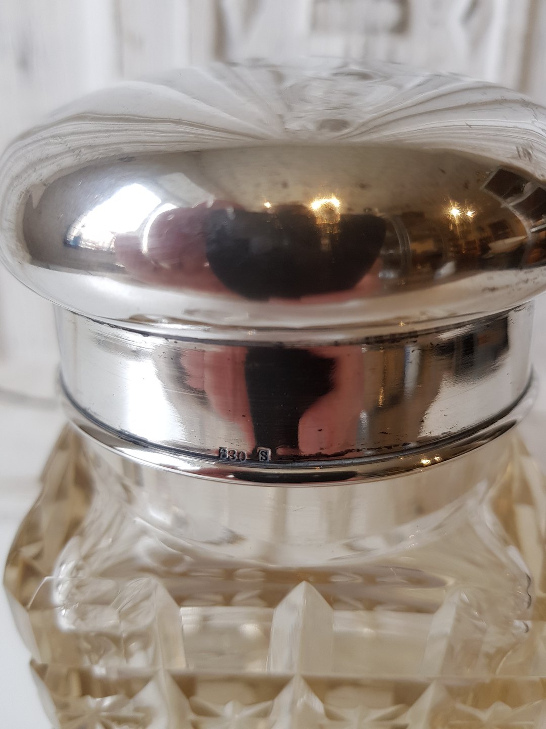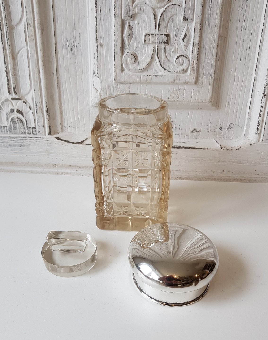 Tedåse i krystal med låg af sølv