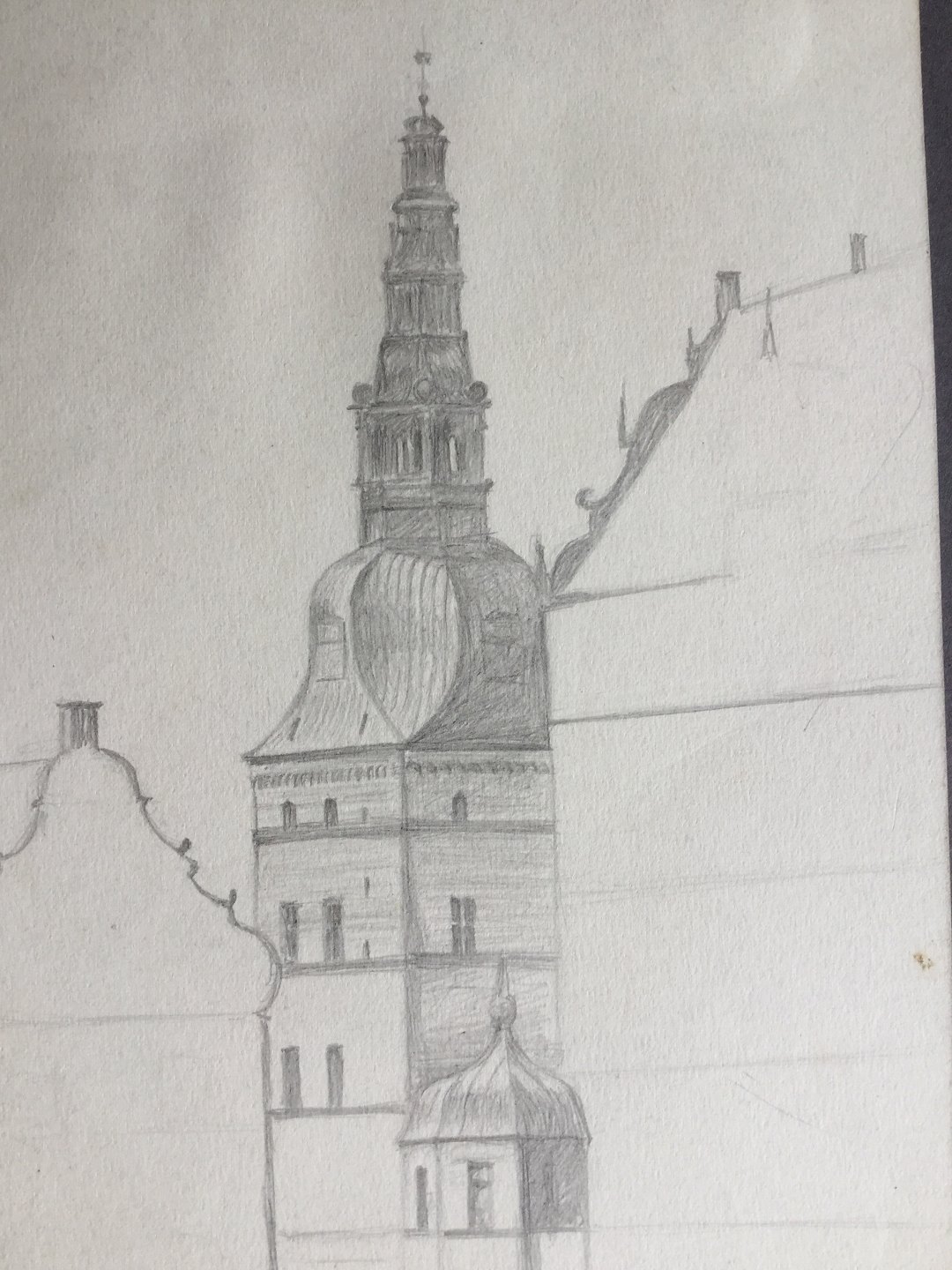 Skitse af Porttårnet ved Frederiksborg Slot i Hillerød.