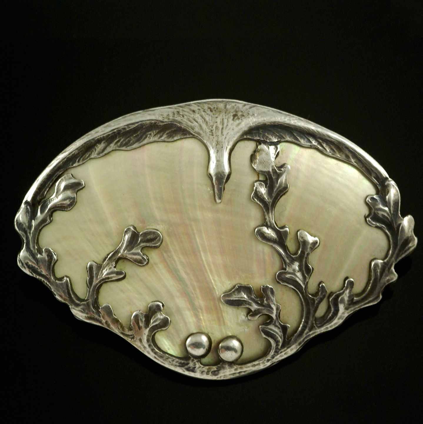 Kirsten Pedersen - Copenhagen. Art Nouveau Silver Brooch with Mother of Pearl