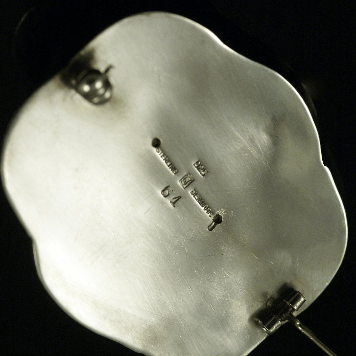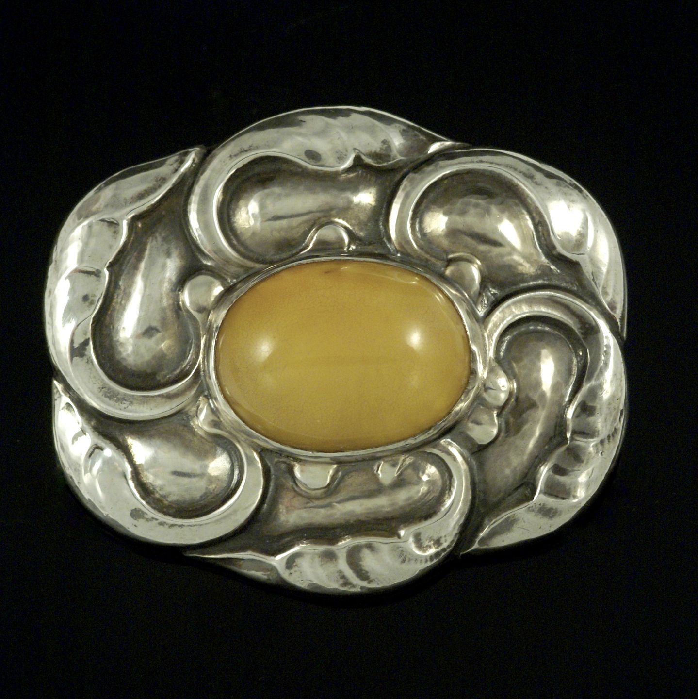 Georg Jensen. Sterling Silver Brooch with Amber #61. 1933-44 Hallmarks.