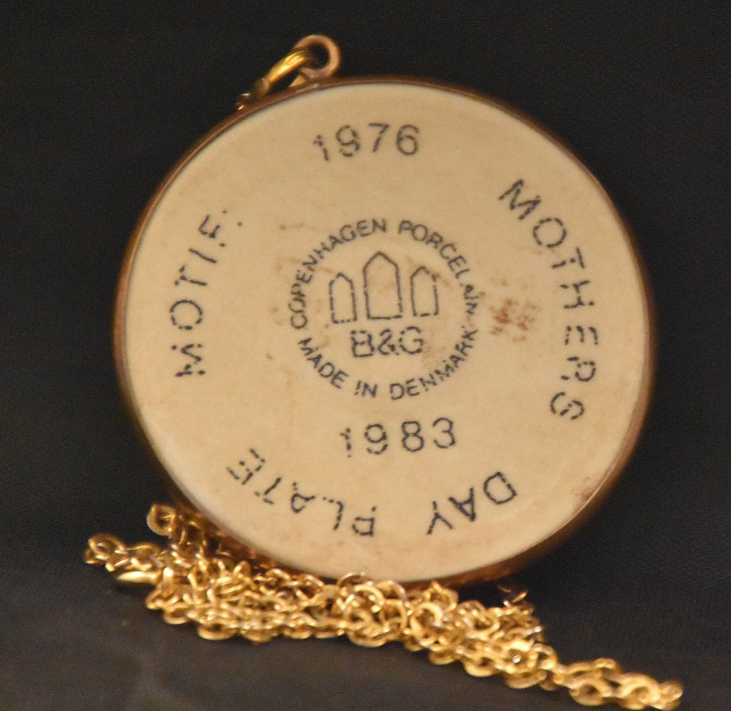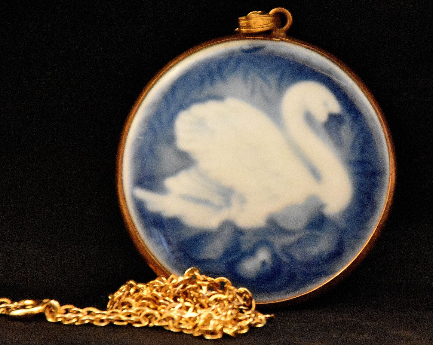 Bing & Grøndahl Kæde + vedhæng med samme motiv som års platten 1976. Svane i med blålig baggrund