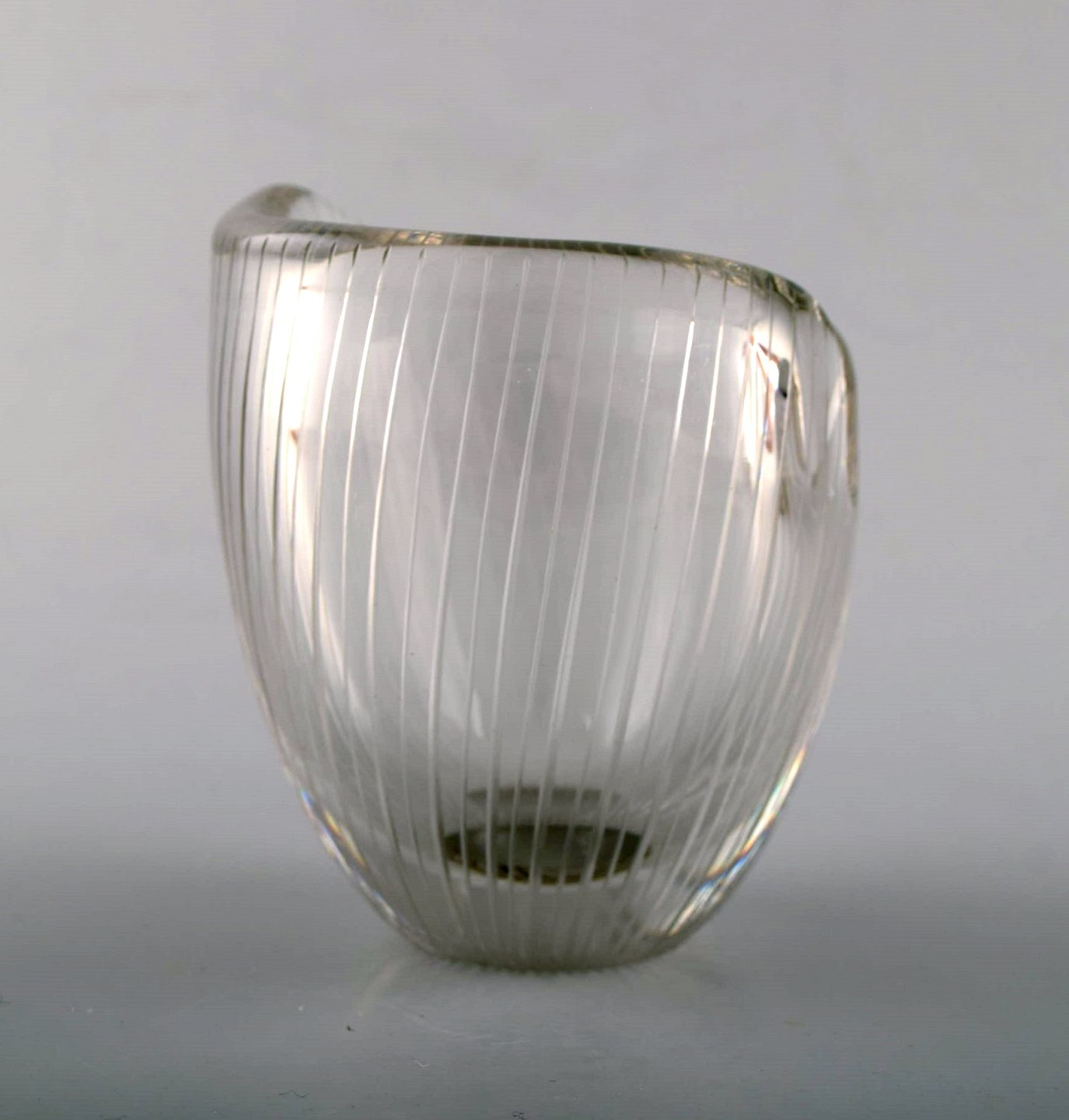 Klar kunstglas vase med indgraveret dekoration i form af striber.