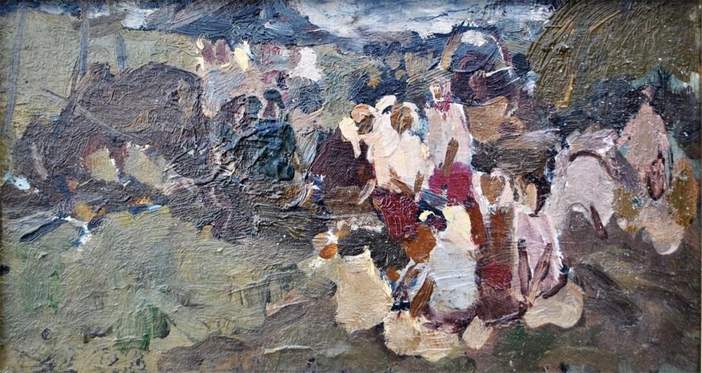 Rudnev, Sergei W. (1956 - ) Rusland: Bazaren. Signeret monogram. 18 x 32 cm.