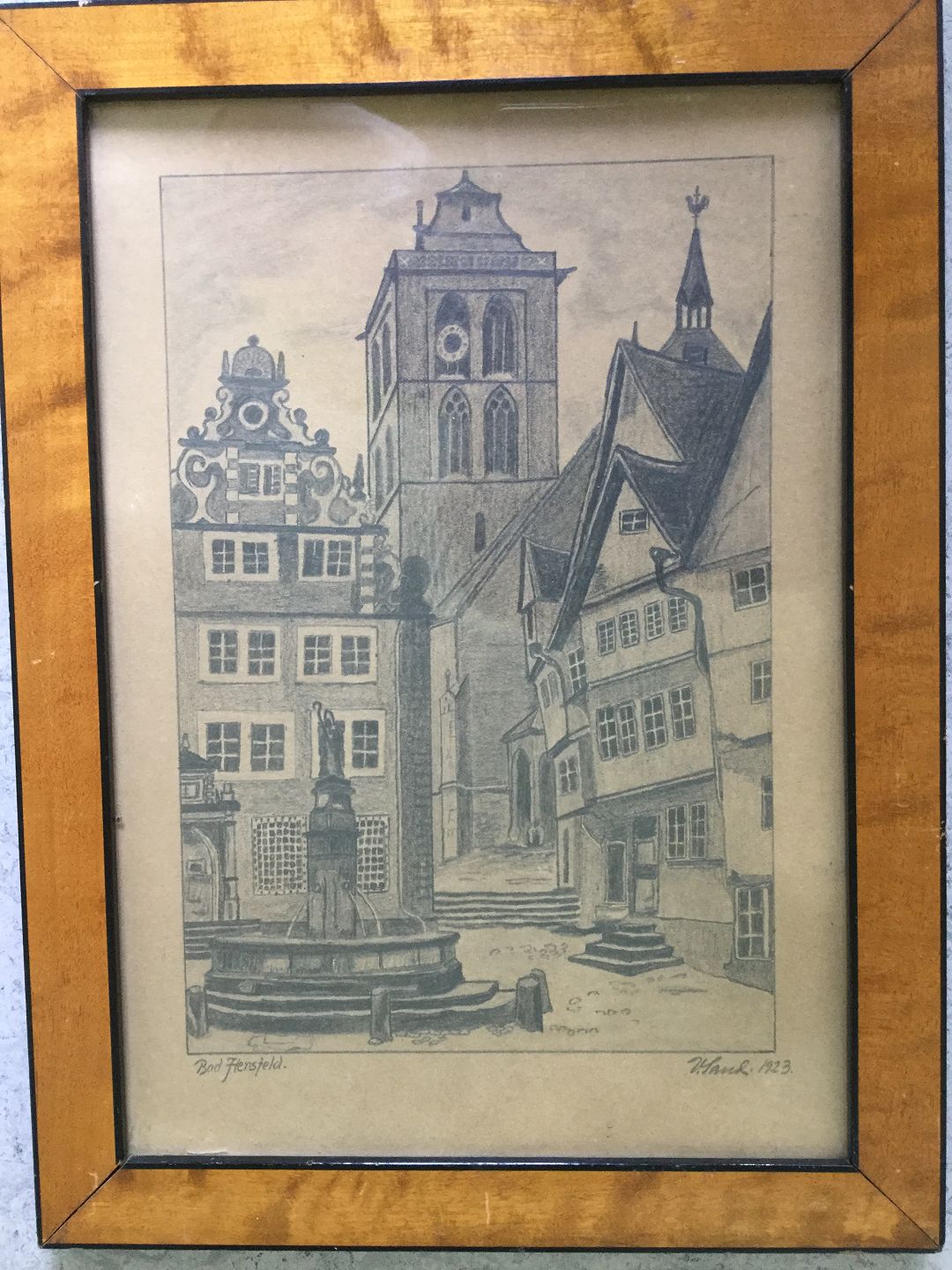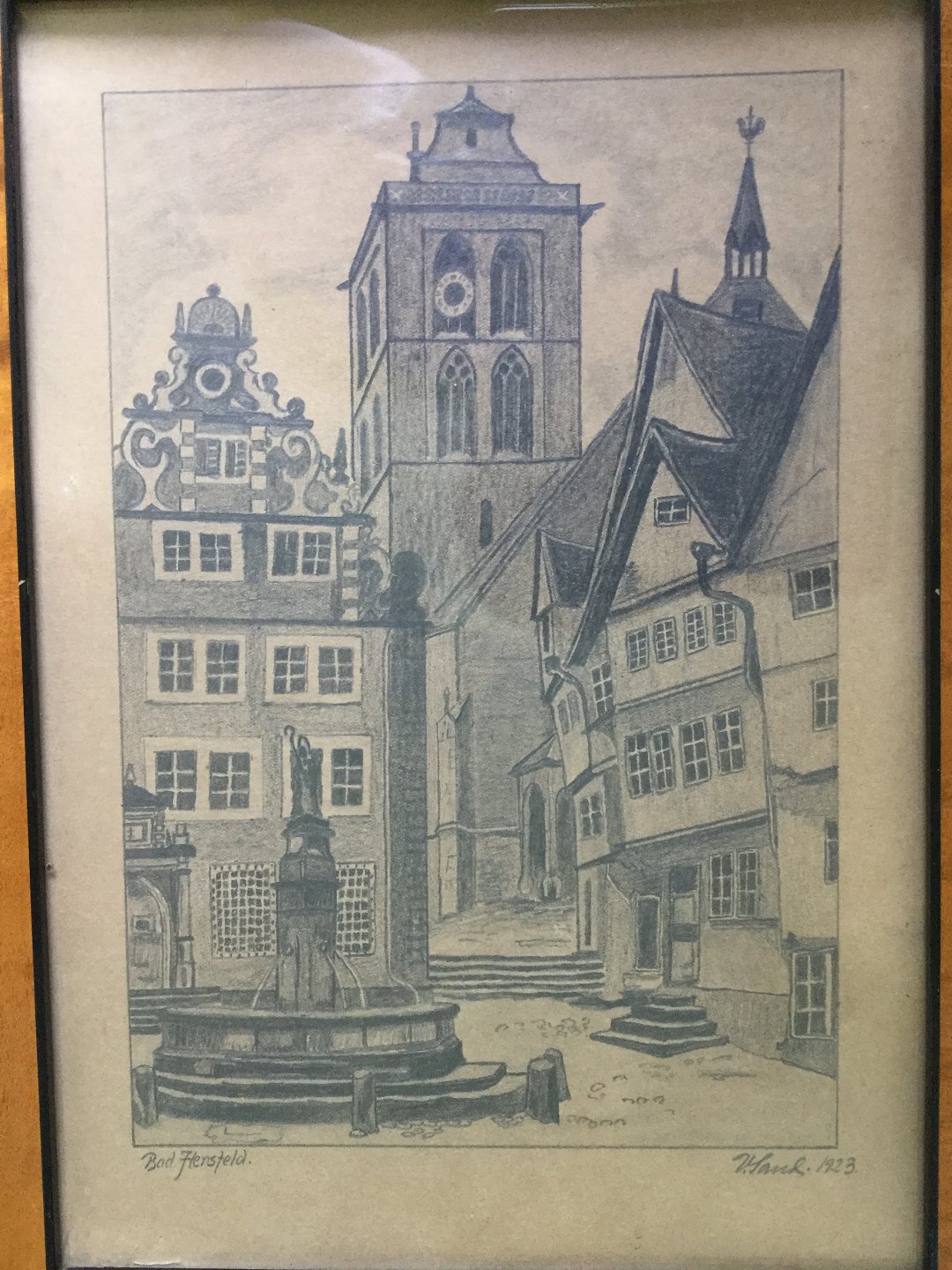 Tegning af V. Sand 1923 - Parti fra Bad Hersfeld, Tyskland.