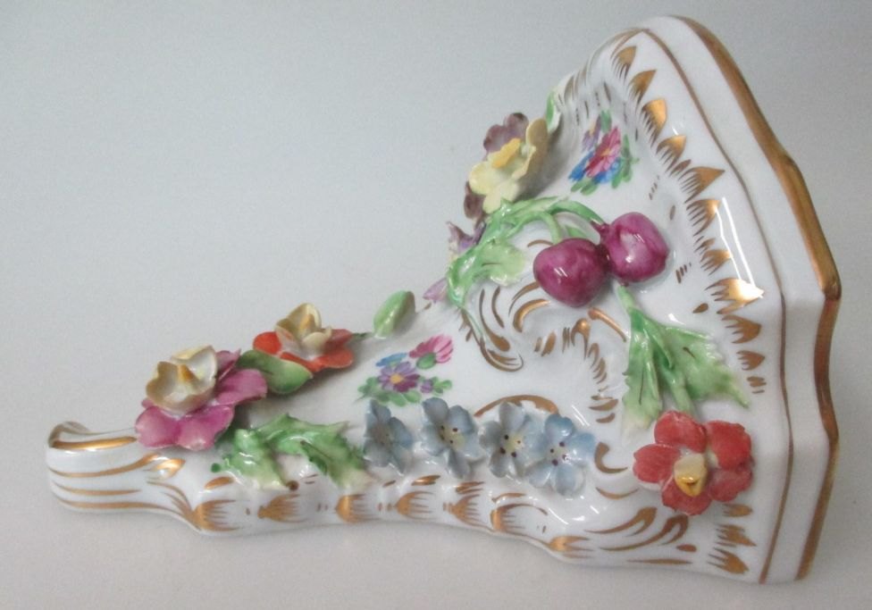German porcelain shelf, new rococo, Potschappel (after 1901), Dresden, Germany. Decorated with hand-painted flowers. Stamped. Height: 15 cm. B: 12.5 cm.