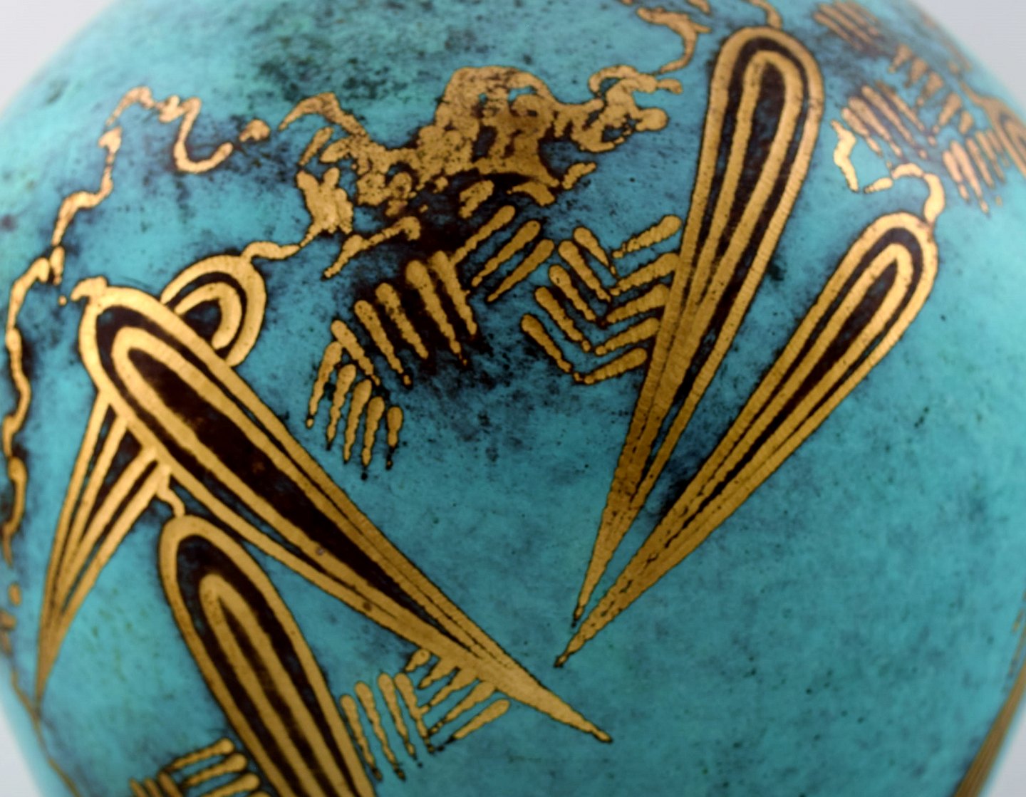 Art Deco bordlampe, grønpatineret bronze med gulddekoration "Ikora" WMF (Württembergische METALLWARENFABRIK)