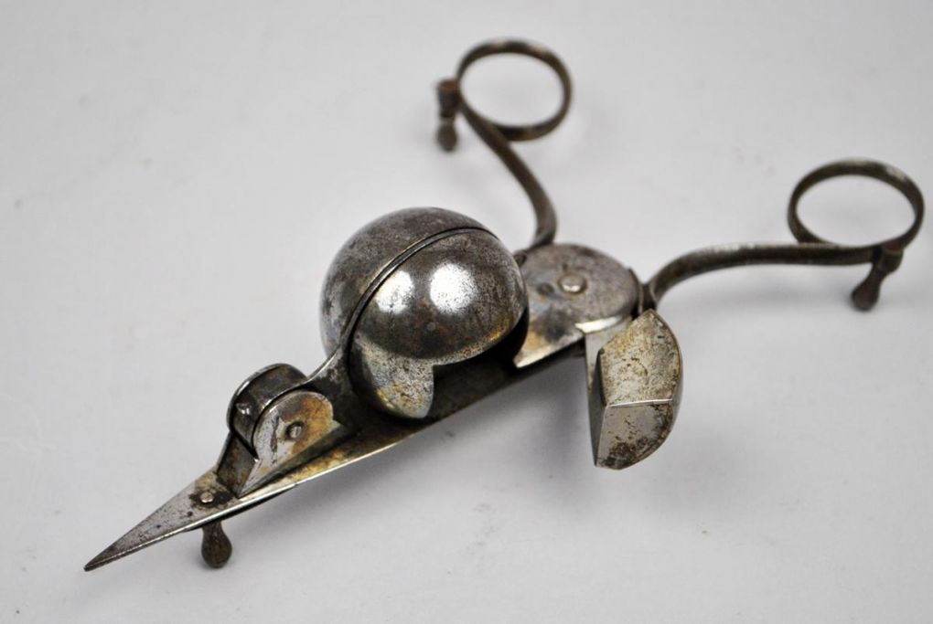 Virkelig sjælden lysesaks i jern, 19. årh. Længde: 18 cm. Interessant udformning. Har været udlån til TV programmet Krejlerkongen. 2019.
