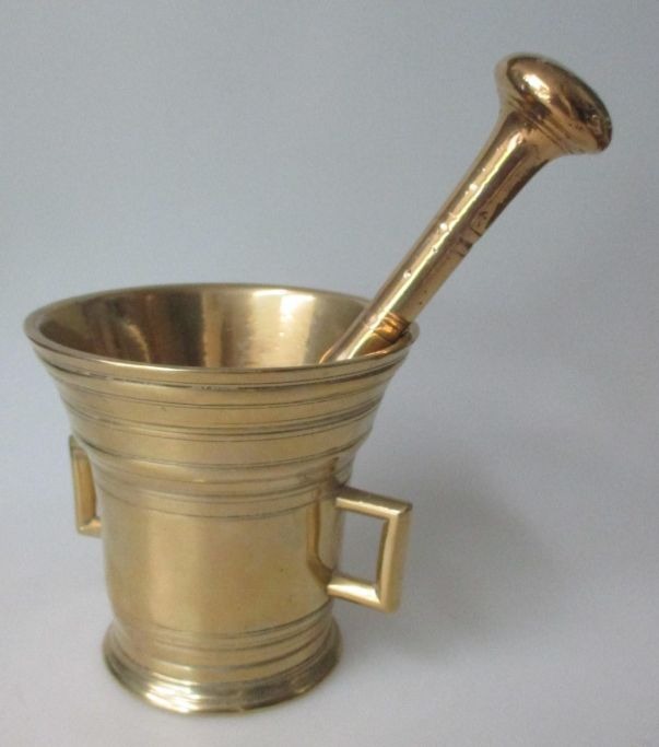 Danish brass mortar with pistil, 18/19. Denmark.