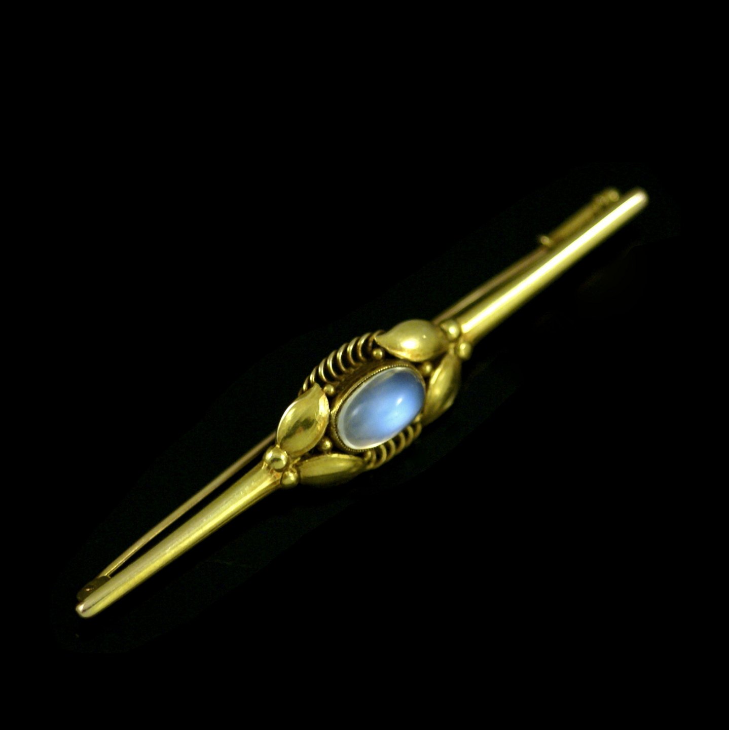 Evald Nielsen Skønvirke Broche i 14k Guld med månesten.
