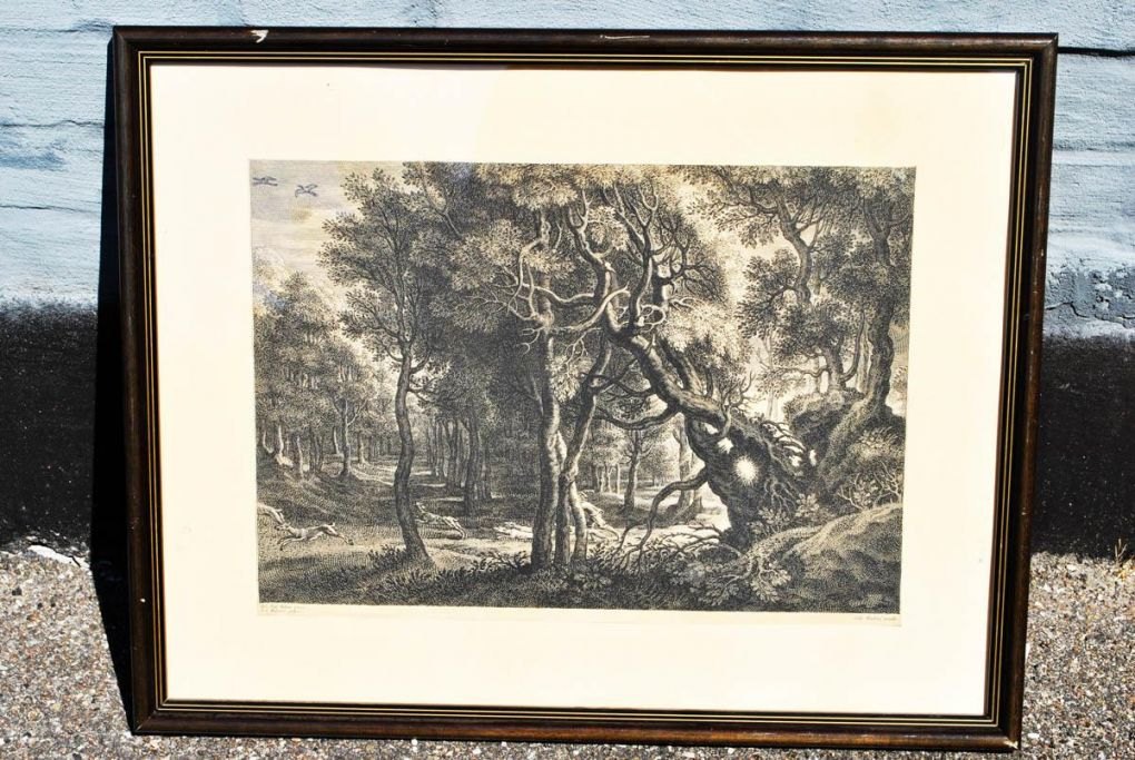 Hendricx, Gillis (1577 - 1640). Belgium. Hunting scene. After Rubens. Signed. Engraving. 30 x 44 cm.