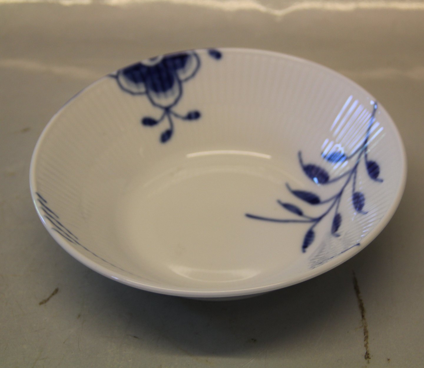 600-1 Dyb tallerken 4,8 x 17 cm (1016898) Blå Mega Mussel Royal Copenhagen MEGA Musselmalet riflet . Muselmalet I fin og hel stand. Passer godt sammen med andre blåmalede spise- og kaffestel  Design: Karen Kjældgård-Larsen Megamussel