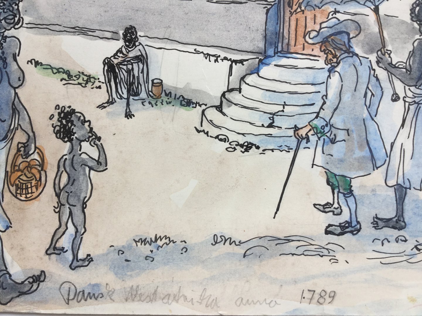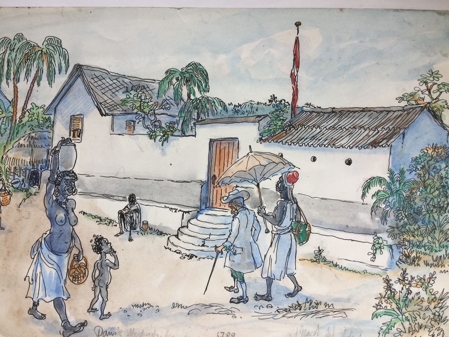 Akvarel af Svend Erik Jensen 1974 "Dansk West Afrika anno 1789"