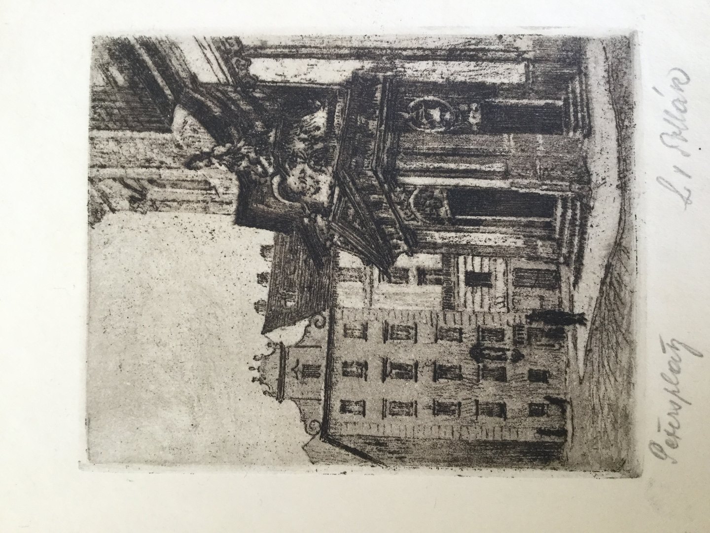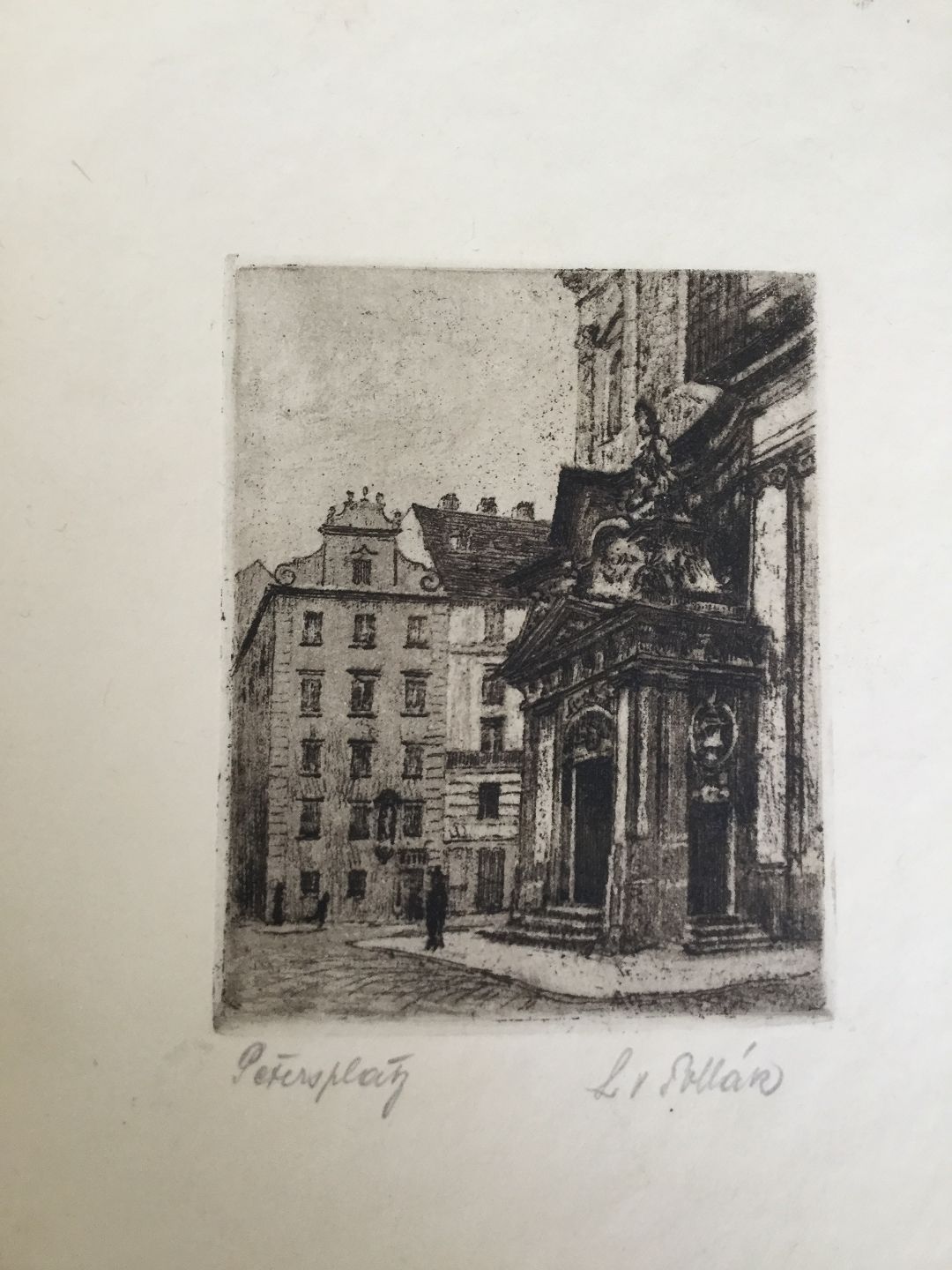 Radering af Ludwig Viktor Pollák - Peters Platz i Wien.