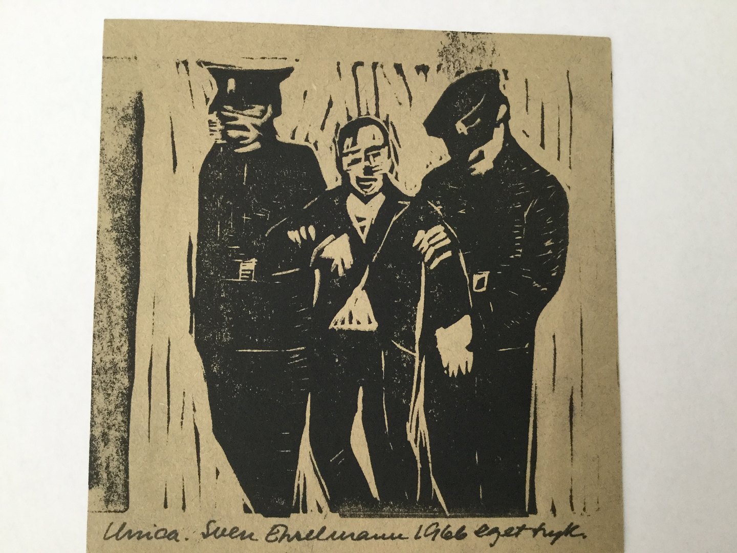 Har et træsnit mage til (se foto 2) - dette er på almindelig brunlig papir og betegnet Unica - mål 11x11