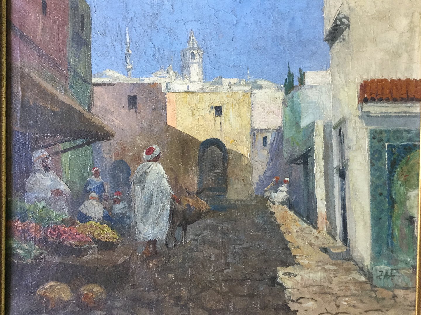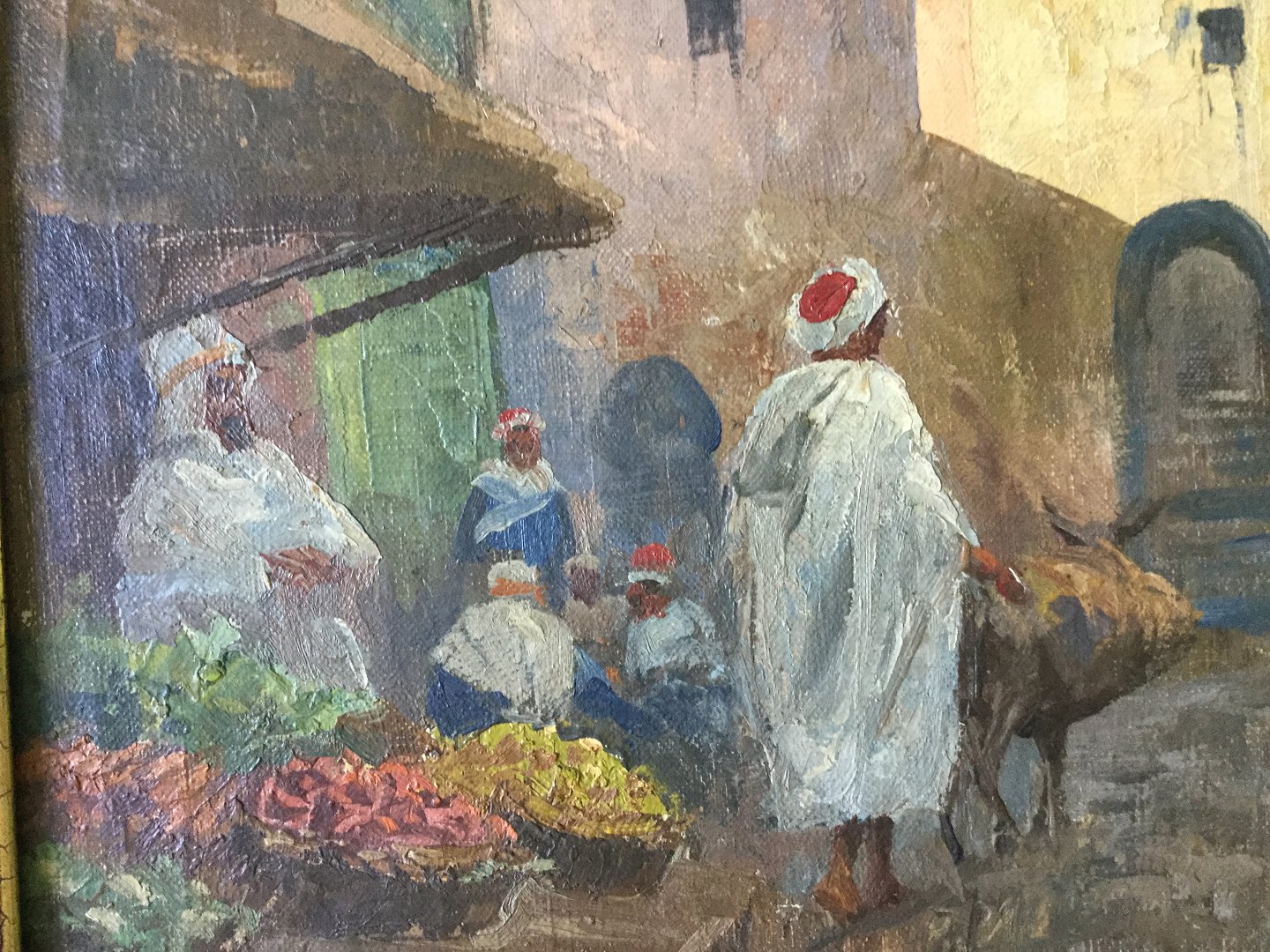 Maleri - Sydlandsk byparti med blomstermarked.