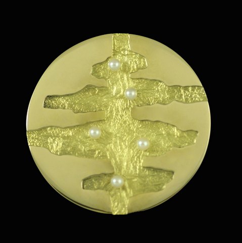 Bent Gabrielsen. Broche i 14k guld med perler. 1960erne