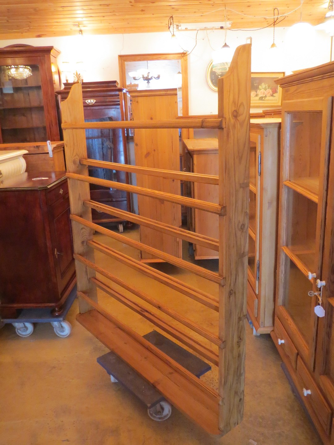 Tallerkenrække afsyret fyrretræ med 5 Rækker restaureret mål H 125, D 15, B 110 cm. 2600/02-P ( Kan males efter ønske )