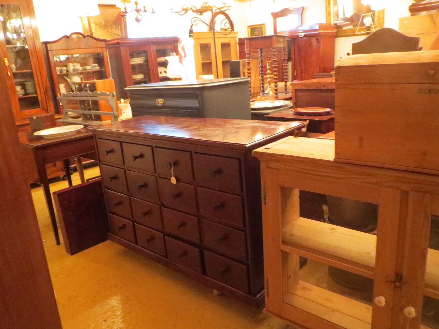 Stor salgsudstilling med restaurerede møbler håndpolerede mahognimøbler, afsyrede fyrretræsmøbler, malede træmøbler, kun originale gamle og antikke møbler.