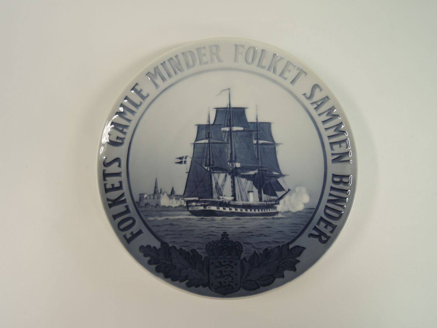 Royal Copenhagen. Commemorative Plate # 245. The frigate Jutland. Diameter 20.5 cm. Produced in 1926. Signed by Christian Benjamin-Olsen