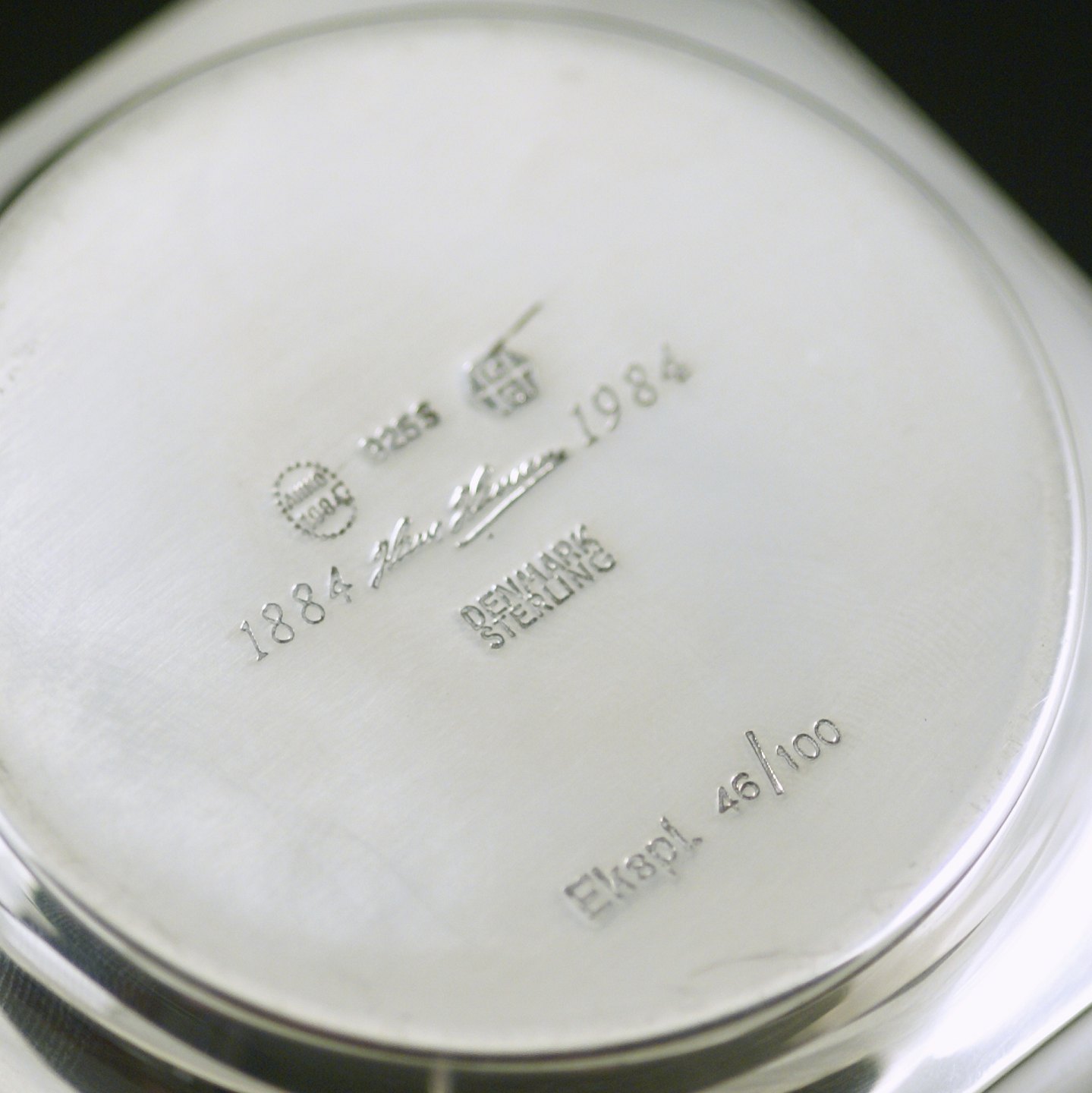 Stemplet med Hans Hansen, Denmark, Sterling, 1884-1984 Anno 1984. Ekspl. 46/100.