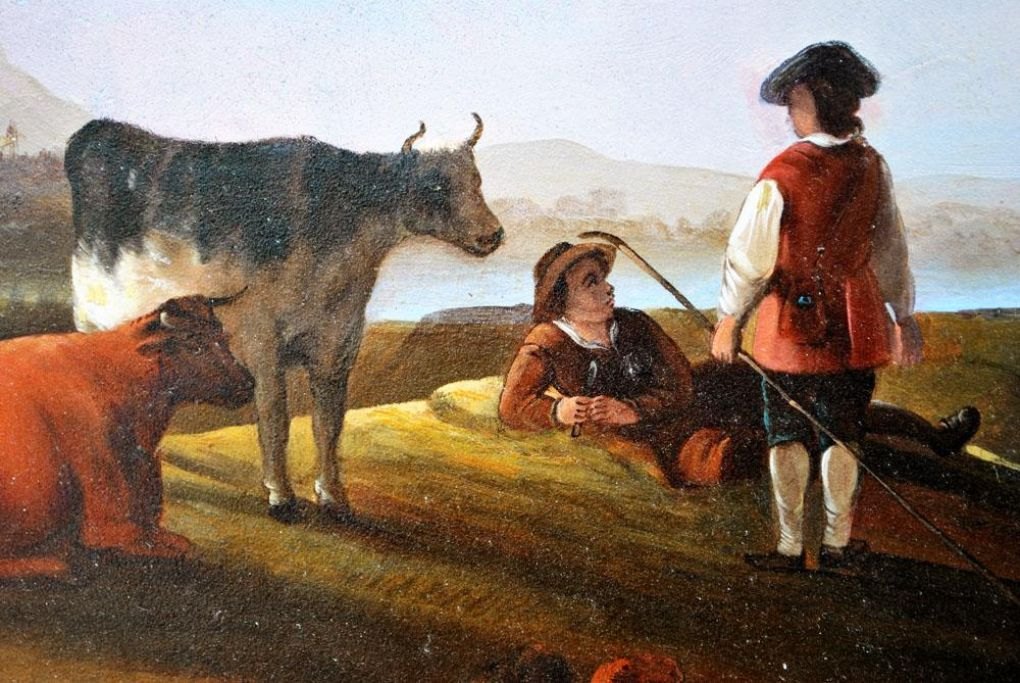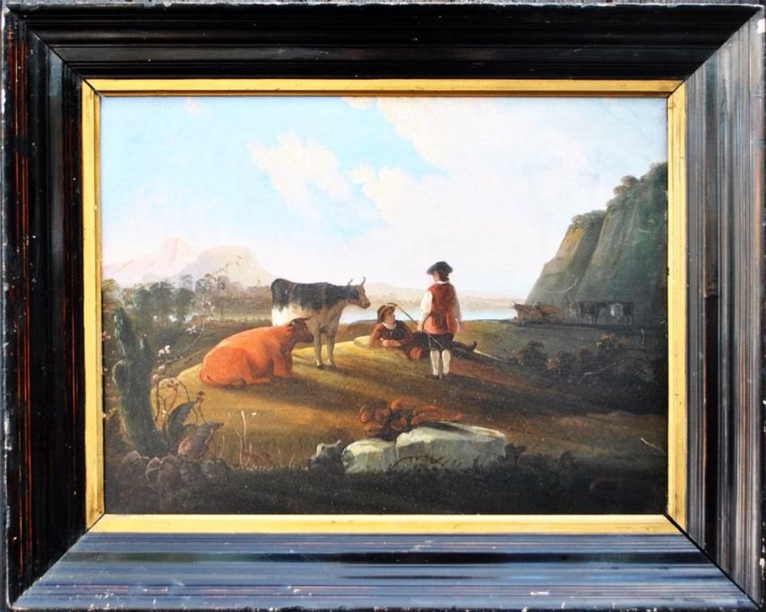Unknown artist (19th century) Shepherd on a field. Oil on metal plate. 30 x 38 cm. Unsigned.