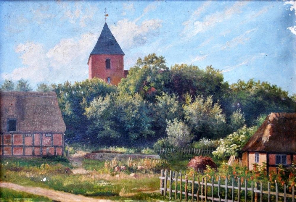 Danish artist (20th century) A village with church