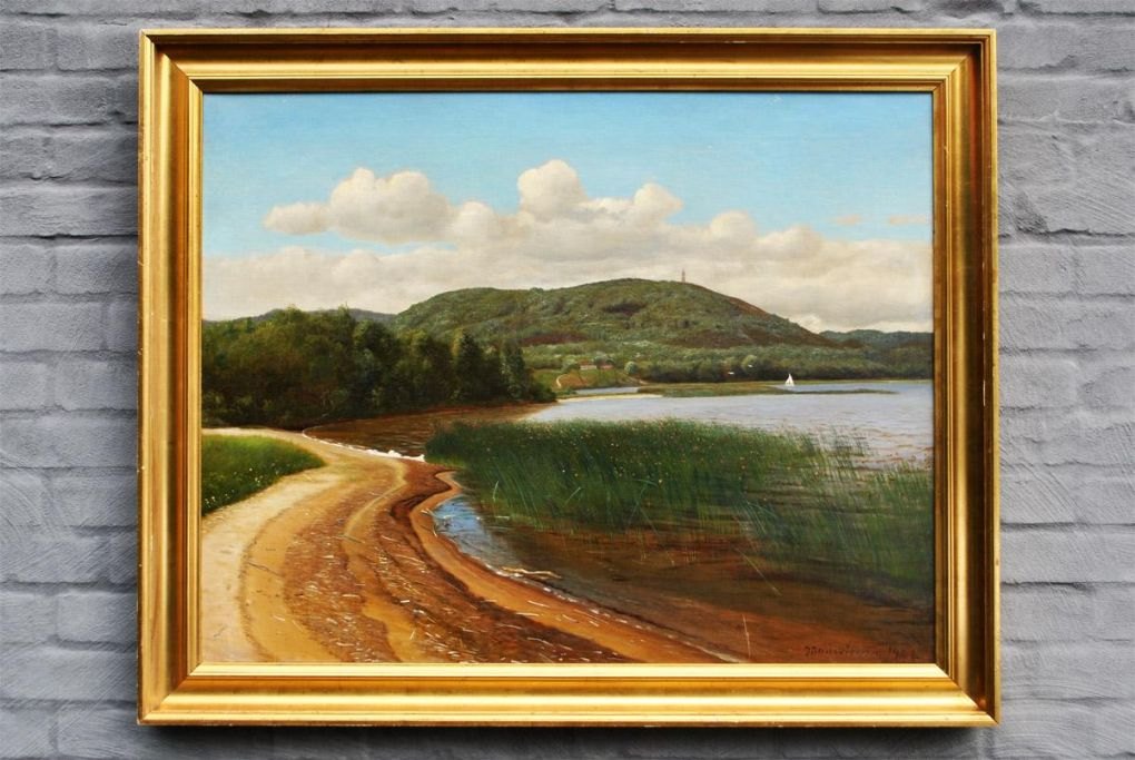 Julius Petersen (1851-1911: Scene from Himmelbjerget one summer day. Oil on canvas. Sign: Julius Petersen 1902. 70 x 90 cm. Framed.