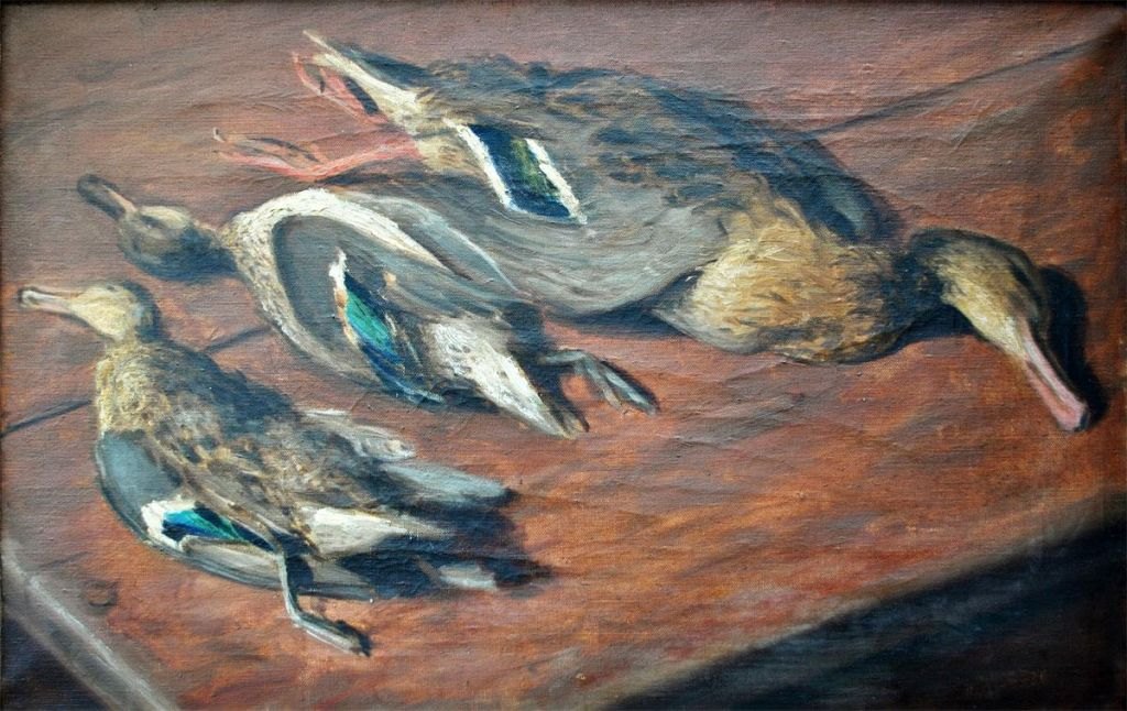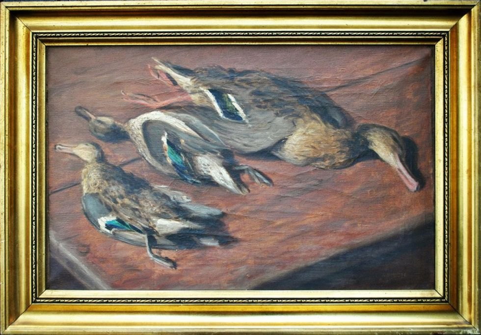 Danish artist (20th ann.) Ducks. Oil on canvas. Faintly signed. 39 x 61 cm.