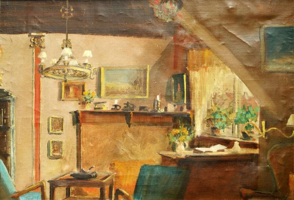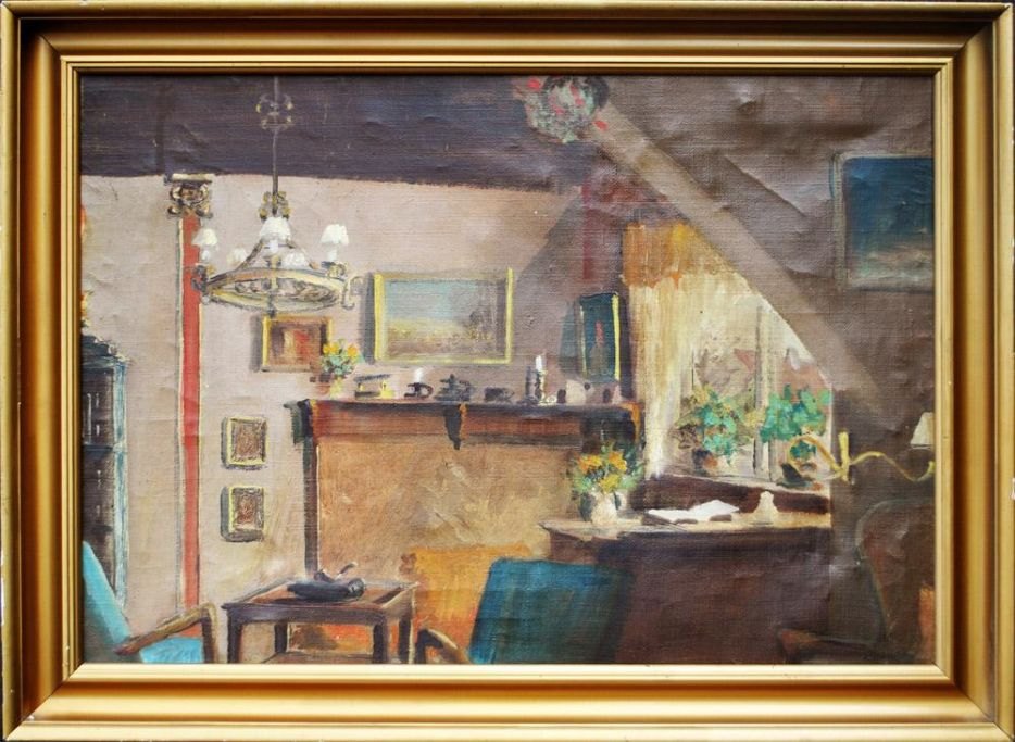 Dansk kunstner (20. årh.) Interiør. Olie på lærred. 47 x 67 cm.