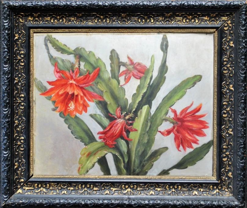 Danish artist (19th century) A christmas cactus. Oil on masonite.