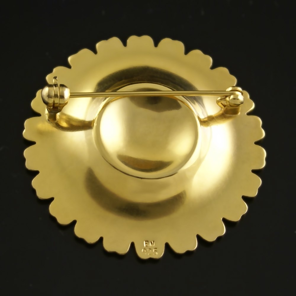 Bernhard Hertz Marguerit / Daisy Broche i forgyldt Sterling Sølv med hvid emalje - 43mm.