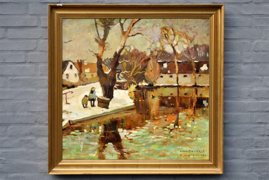 Hune, Anders (1894-1968) Danmark. Voxlev Mølle. Olie på lærred. 81 x 85 cm. Signeret: Anders Hune 38.