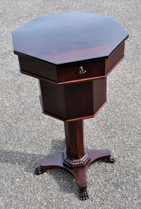 Sewing table in mahogany, new rococo, 19th century. Denmark. On four legs with lion feet. 8 lace top with small room with lid. Height: 76 cm. Slide plate: 48 cm. Really nice condition - appears new handpolished.